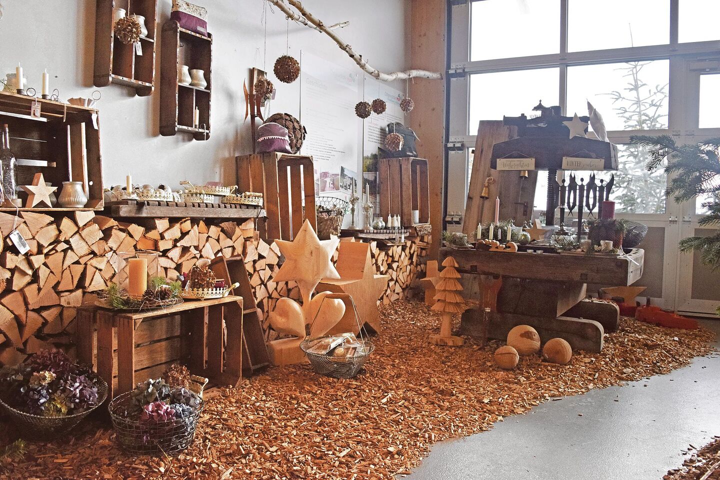 Es hat eine grosse Auswahl an handgefertigten Dekorationen und diverse Artikel aus Holz, hergestellt von Köbi und Andreas Bühler: Holzsterne, -tannenbäume usw. «Die Holzdeko und die Adventskränze sind sehr gefragt», sagt Osterwalder. Mit dem Kranzen beginnt sie kurz vor dem ersten Advent, «so sind sie frisch und halten länger».