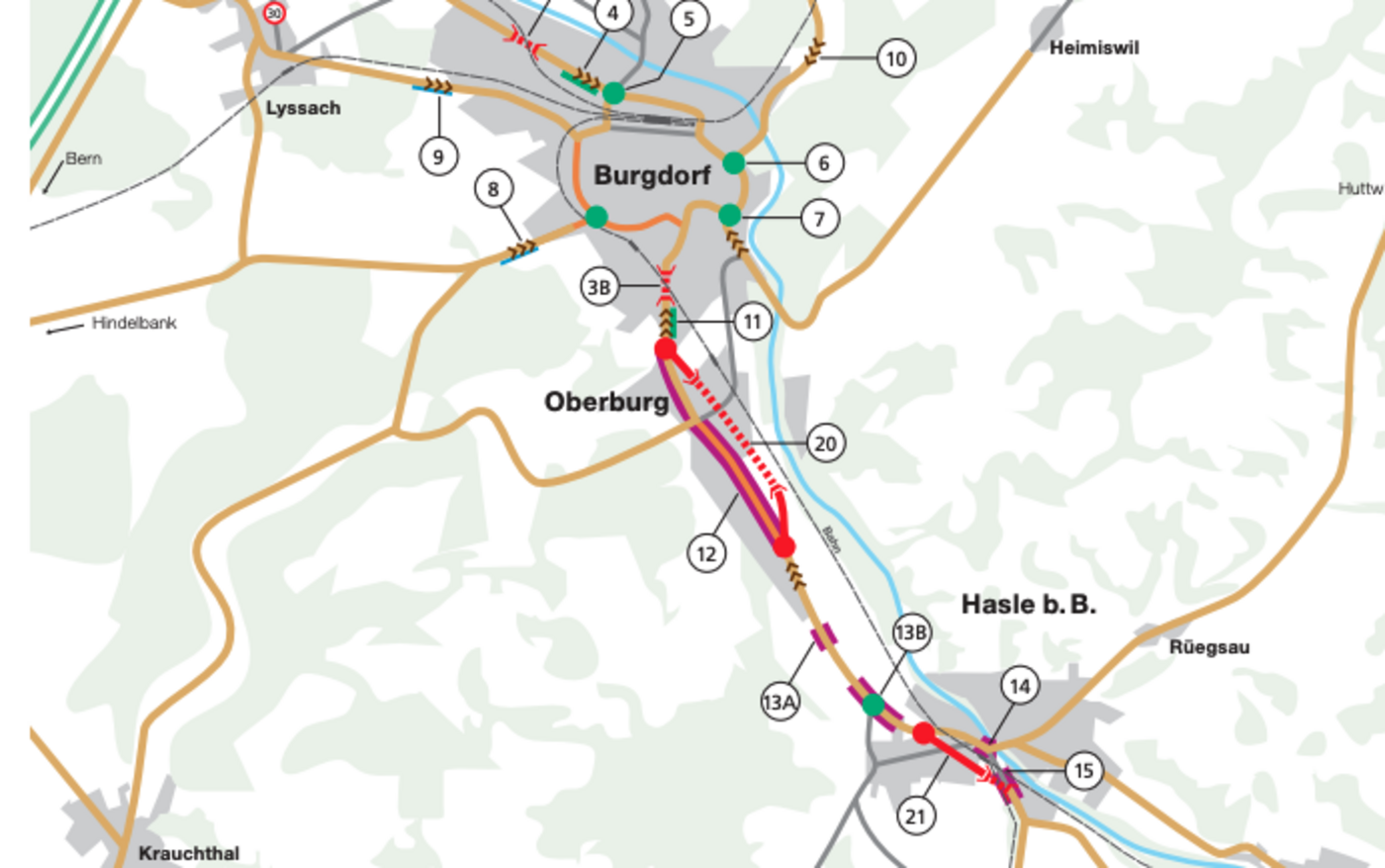 Beim Projekt im Raum Burgdorf, Oberburg und Hasle seien die betroffenen Bauernfamilien von Beginn an vorbildlich in die Diskussion miteinbezogen worden, so der BEBV. Die Behörden hätten Anliegen von Seiten Landwirtschaft grösstenteils berücksichtigt und es habe daher auch keine einzige Beschwerde gegen die geplante Verkehrssanierung gegeben. «Der Vorstand Landwirtschaft Emmental und der Berner Bauernverband sprechen sich klar für die Ja-Parole aus», so das Fazit.