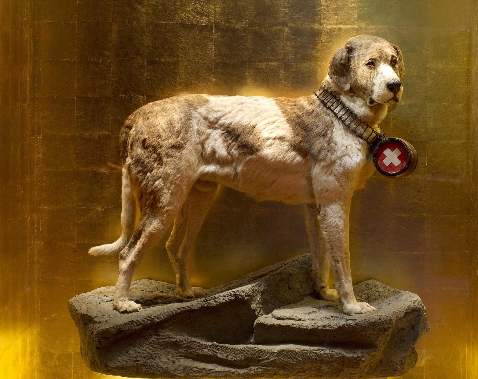 Das Markenzeichen des Bernhardiners ist sein Schnapsfässchen. Gerettete sollten sich mit einem guten Schluck Hochprozentigem stärken, heisst es in den Legenden. Tatsächlich ist in manchen historischen Schriften von einem Branntweinfläschen die Rede, welches die Hunde vom St. Bernhard am Hals getragen haben sollen. Fachleute zweifeln aber heute am Wahrheitsgehalt dieses Bildes. Trotzdem sind der Bernhardiner und sein Fässchen im Lauf der letzten 200 Jahre unzertrennlich und zu einem Symbol für die Schweiz geworden. Diesem Umstand hat auch das Naturhistorische Museum in Bern Rechnung getragen: Obwohl nicht historisch verbürgt, trägt Barry in der ihm gewidmeten Dauerausstellung ein Fässchen um den Hals.