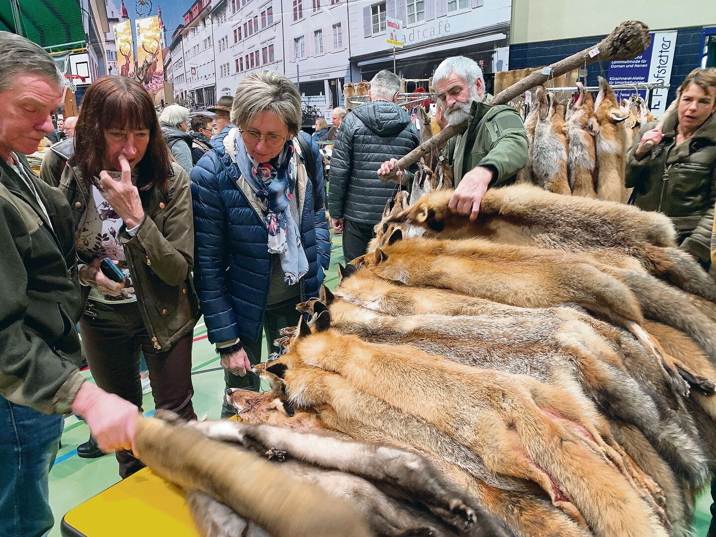 Nein, Wolfsfelle waren am Fälimärt Sursee LU am Dienstag, 6. Februar 2024, nicht zu erstehen. Auch keine Hirschfelle, die seien kaum gefragt, meinten Jäger. Wohl aber waren prächtige Geweihe von Rothirschen zu sehen. Der Bestandesdruck dieser Tiere sei nur sehr regional ein Problem, allenfalls im oberen Entlebuch, sagte Jäger Toni Lustenberger aus Entlebuch. Es würden aber genügend Tiere geschossen, Wildverbiss sei zumindest im unteren Entlebuch weniger ein Thema als in anderen Regionen. «Die Diskussion um den negativen Wildeinfluss auf den Wald wird übertrieben», ergänzte Toni Thalmann aus Entlebuch.