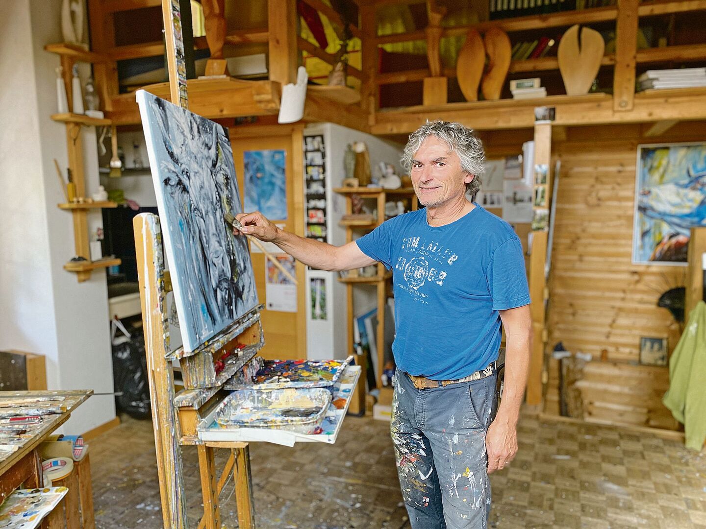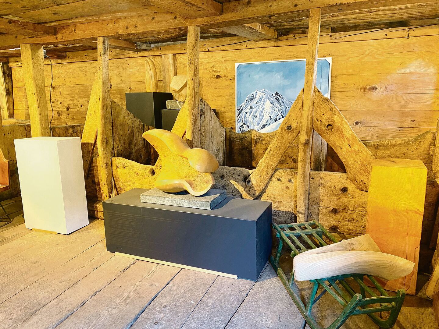 Neben dem Ausstellungsraum im alten Kuhstall hat Björn Zryd seit zwei Jahren eine eigene Galerie im Dorf, in der er neben seinen gegenständlichen Bildern auch abstrakte Holzskulpturen ausstellt. Er ist nach wie vor sehr mit Adelboden verbunden, vor allem aber mit dem Gilbach. «Hier höre ich nichts ausser Kuhglocken und dem Plätschern des Wassers im Brunnen. Das ist für mich Frieden pur. Ich bin ein extremer Heimatmensch.»