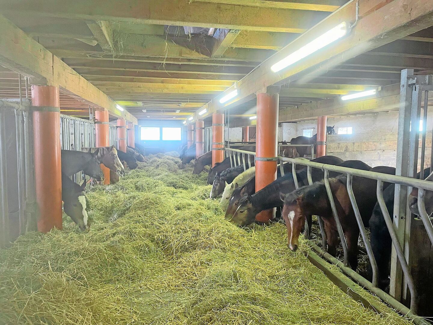 Pferdebestand: 56 Pferde, darunter drei Deckhengste, 12 Zuchtstuten, 35 Jungpferde und Fohlen, drei Ponys und drei Einsiedler-Stuten