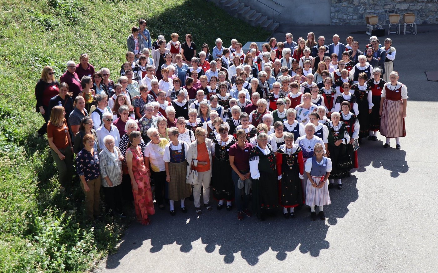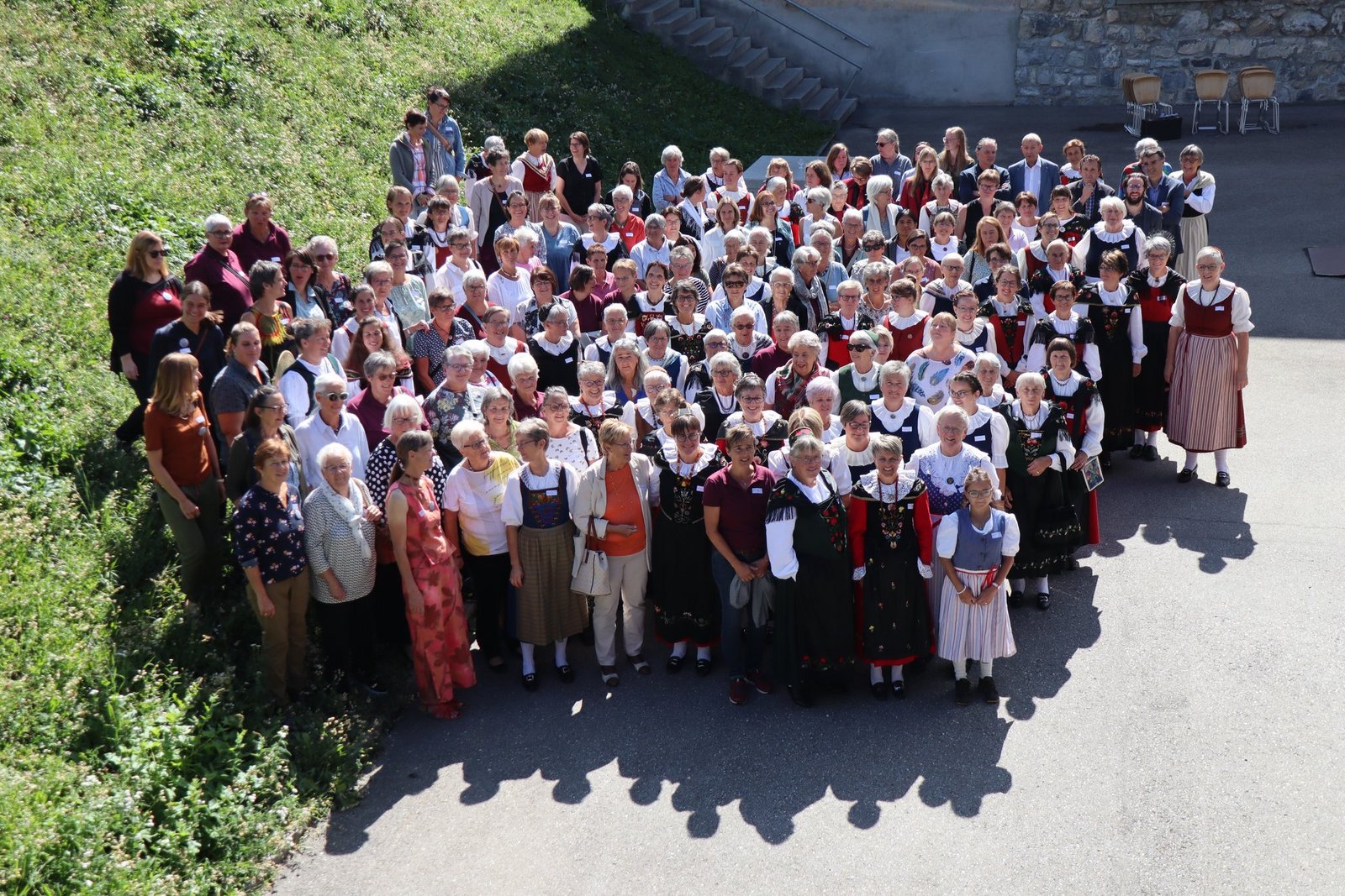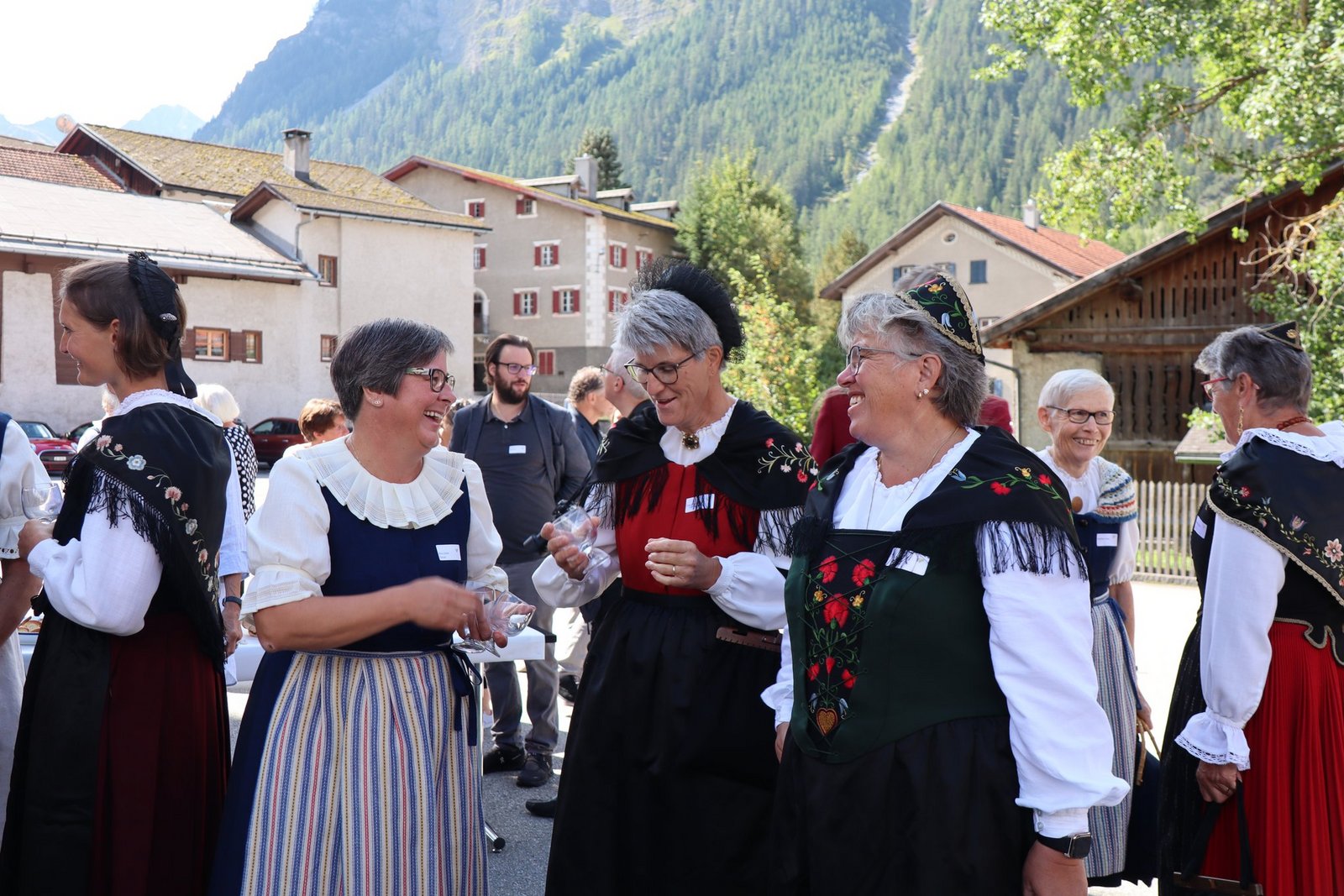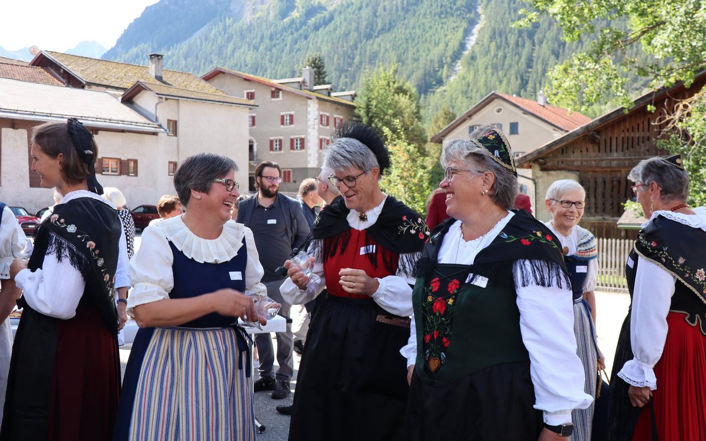 Die Musikgesellschaft Bergün begrüsste bei schönstem Wetter die vielen Gäste. Die Bäuerinnen der Sektion Filisur sorgten für einen reichhaltigen Apéro, bevor man sich zum Gruppenfoto versammelte und dann das Mittagessen geniessen konnte. Das Dessertbuffet hatten die Bergüner Vereinsmitglieder hergerichtet. Somit konnten alle Frauen den Festtag geniessen.