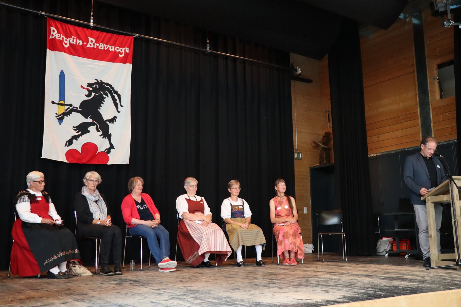 In einem Podiumsgespräch, geleitet von Peter Küchler, Direktor Plantahof, antworteten Nina Tanner und Marta Padrum, ehemalige Präsidentinnen BBLV, Astrid Derungs, amtierende Präsidentin BBLV, Romy Schmidt, ehemalige Präsidentin Sektion Bergün, Eva Stählin, amtierende Präsidentin Sektion Bergün und Jeanette Zürcher, Vorstand SBLV, auf seine Inputs.