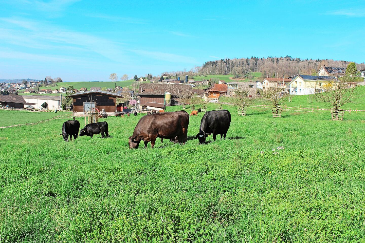 Auf dem 33-Hektaren-Hof Riglisberg oberhalb des Dorfes Hägglingen läuft viel. Neben der Mutterkuhherde werden 320 Mastschweine gehalten, es wird Ackerbau betrieben mit Randen, Kartoffeln, Dreschfrüchten und Mais. Zusätzlich besitzt der Bauer mit einem Kollegen zwei Mähdrescher, die in der Erntezeit tagtäglich laufen.