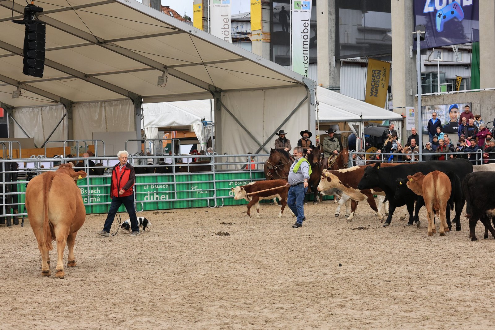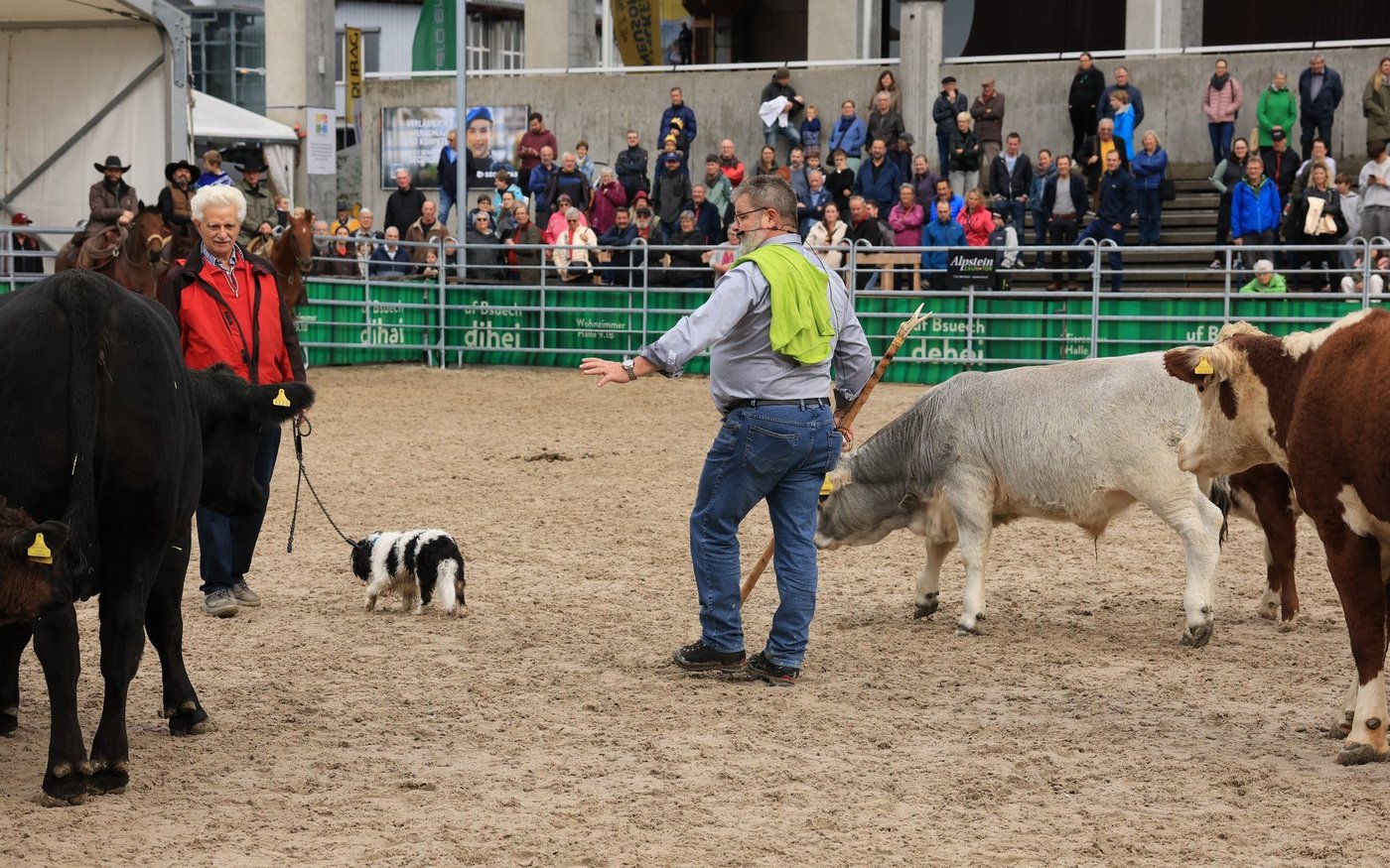 «Da muss der Hund die Schnauze halten, sonst kommt er drunter». Es waren deutliche Worte, die Andrea Accola, Leiter Feldbau und Versuchswesen vom Plantahof, an die Zuschauer richtete. Accola zeigte am zweiten Olma-Tag, dem Tag des Fleischrindes am 11. Oktober, wie man sich als Wanderer richtig verhält, wenn man einer Mutterkuh-Herde auf der Weide begegnet.
