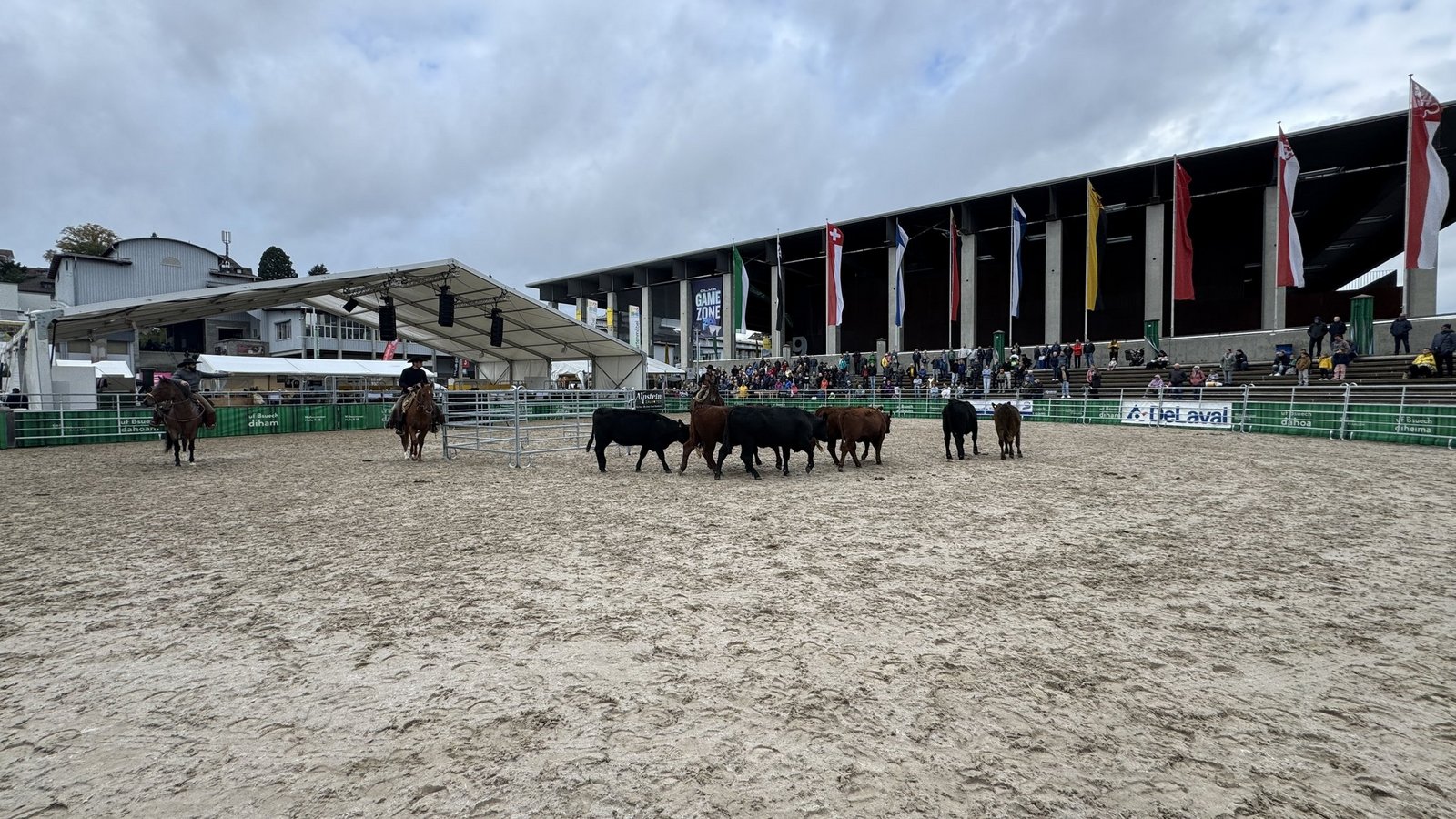 Ebenfalls in der Arena präsent waren die «Cowboys» von der Stone Ranch aus Wegenstetten. Es waren Stefan, Silvan und Thomas Schreiber. Sie waren hoch zu Ross und demonstrierten eindrücklich während des ganzen Anlasses, wie sie die Kühe nach der Methode der «low stress stockmanship» in der Arena trieben.
