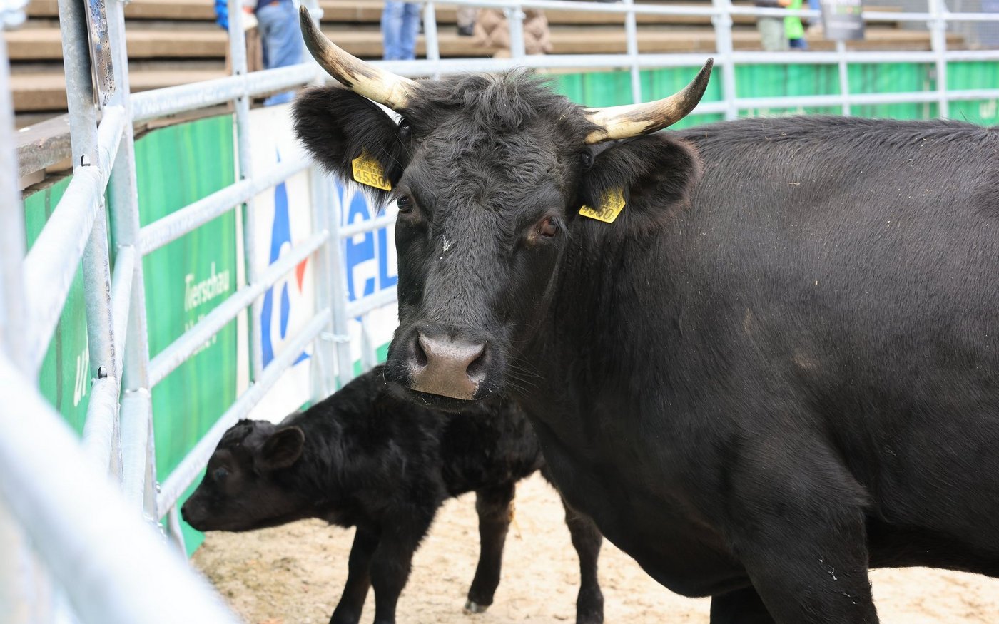 Er tat dies in der Olma Arena, umgeben von verschiedenen Mutterkuh-Rassen. Hier erklärten Christian Manser, Mitorganisator der Olma und Urs Vogt, von der Organisation Mutterkuh Schweiz zuerst die Grundprinzipien der Mutterkuhhaltung, nämlich, dass das Kalb mit der Mutter auf der Weide aufwächst. Im Ring standen dazu ein paar Dexter-Kühe, sowie der Dexter-Stier «Eric», der bereits über 30 Nachkommen verfügt.