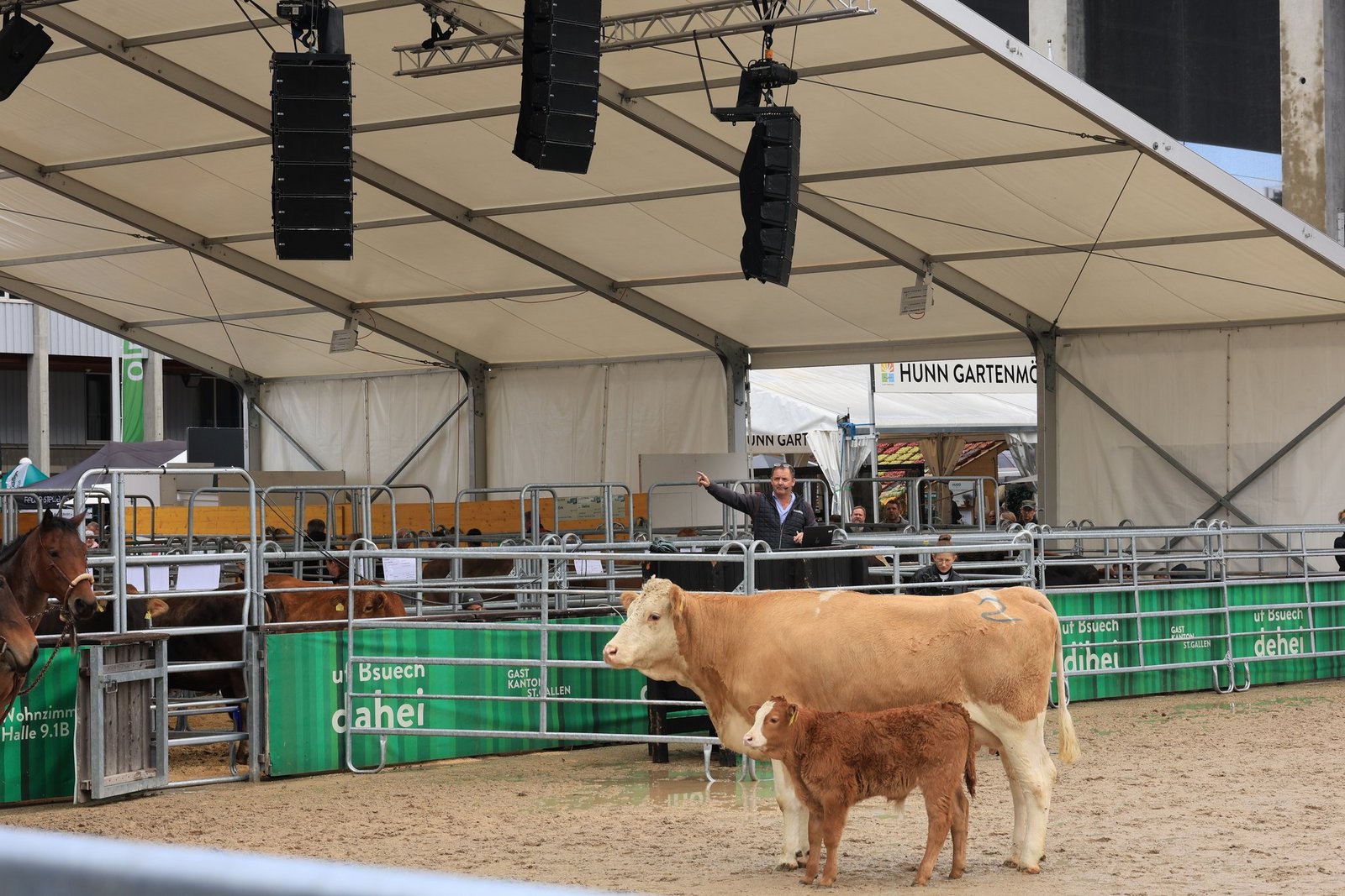 Geleitet wurde sie von Urs Jaquemet, Direktor der Vianco. Insgesamt gingen 24 Tiere (17 trächtige Rinder und 7 Kühe mit Kalb), unter den Hammer. «Das ist eine wunderbare Auswahl von hervorragender Qualität», warb zu Beginn der Veranstaltung, Jaquemet für die Tiere.