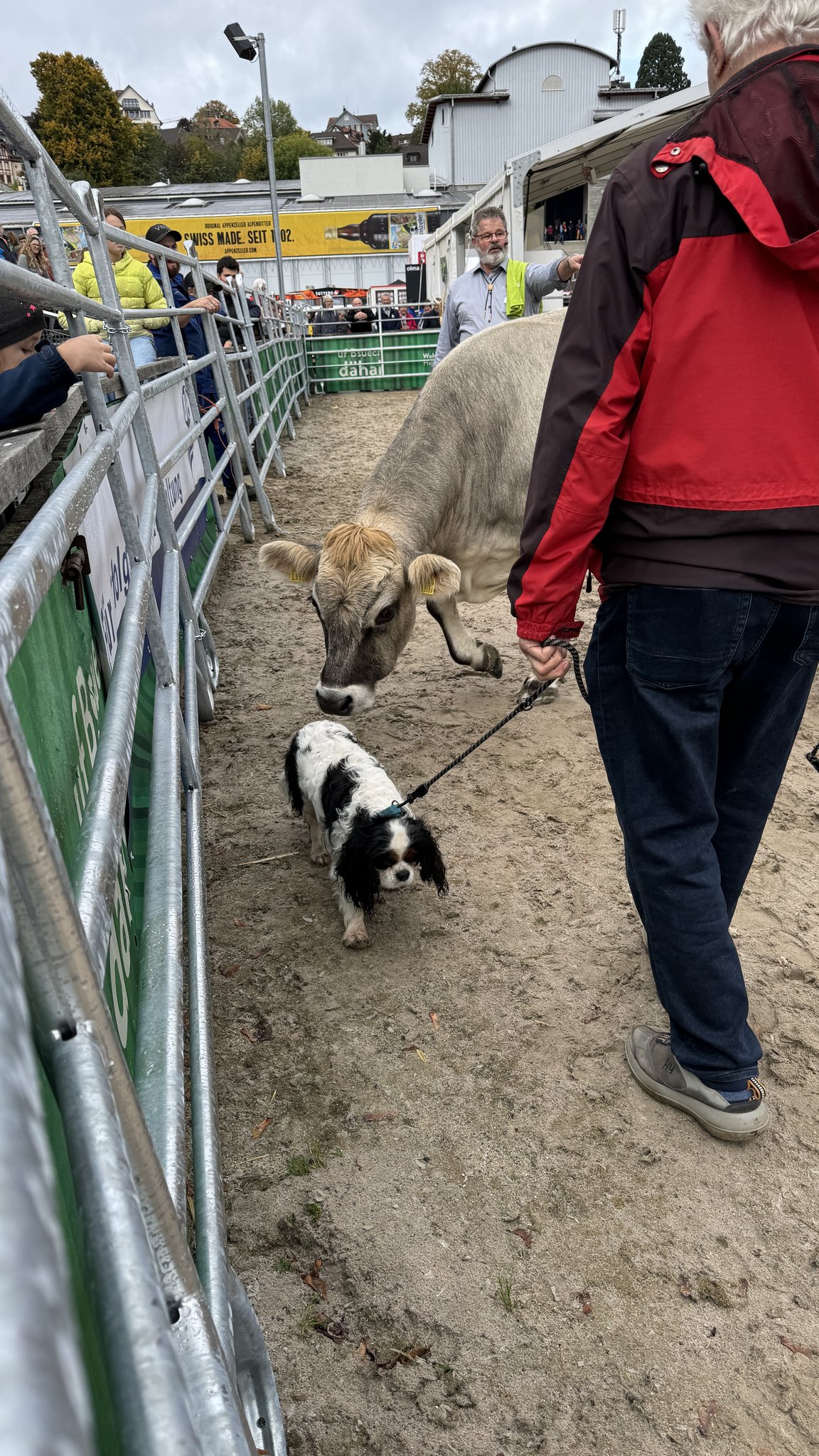 Die Mutterkühe reagierten sofort auf die Präsenz des Hundes. Während einige ihn misstrauisch beschnupperten, standen andere, wie zum Beispiel die Hereford-Kuh «Anik» regelrecht «unter Strom». Andrea Accola musste sie ein paar Mal mit seiner Präsenz bremsen. «Filou» war sichtlich wohl, als er wieder aus der Arena durfte.