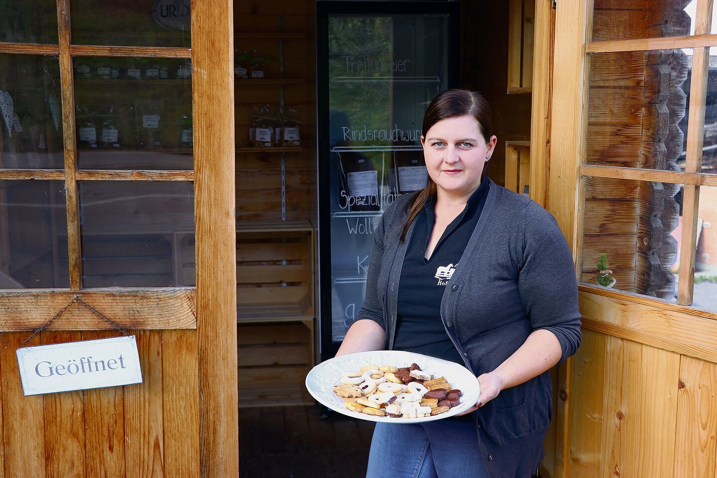 [IMG 3]Daniela Widmer stellt das Gebäck für ihren Hofladen her, den sie 2016 eröffnet und ein Jahr später durch einen grösseres Häuschen ersetzt hat, sie besucht zwei Weihnachtsmärkte und liefert Kunden- und Mitarbeitergeschenke an Firmen. Die 36-Jährige hat Koch gelernt und war schon damals eine der wenigen, die sich bei der Arbeit freiwillig für die Herstellung von Patisserie meldeten. Auf Gebäck hat sie sich schliesslich spezialisiert, weil auf dem Landwirtschaftsbetrieb ihres Mannes seit Generationen Dinkel angebaut wird und sie für ihre Produkte hofeigenes Dinkelmehl verwenden kann. Diese Regionalität ist ihr wichtig.