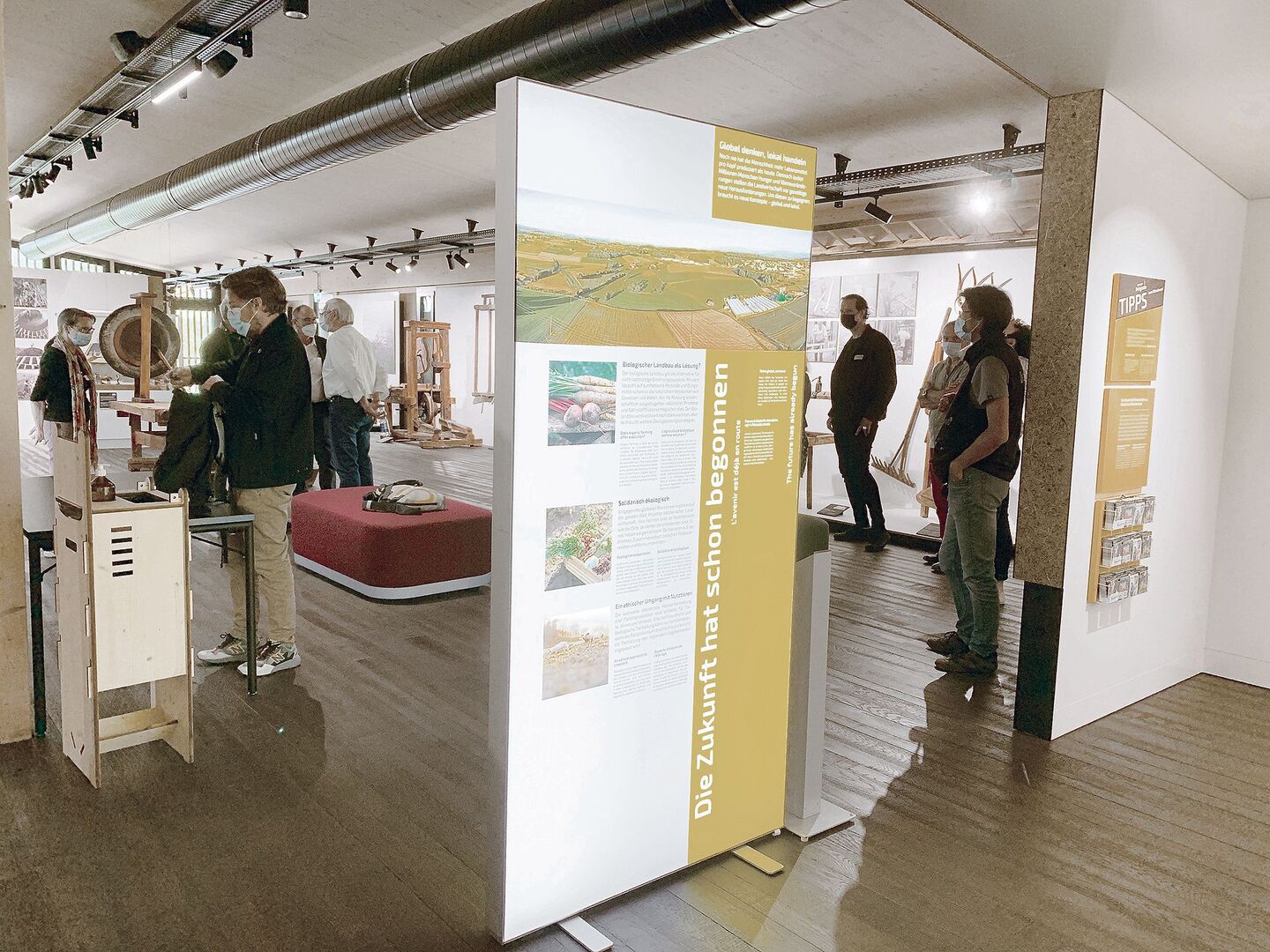 Weniger Andrang als der Erlebnishof Burgrain verzeichnet das nahe Agrarmuseum, obwohl nur wenige Schritte entfernt und mit einem attraktiven Naturpfad mit vielen Ökoelementen, Spielmöglichkeiten und Schaugarten verbunden. Vor rund einem halben Jahr wurde das neu gebaute und konzeptionell komplett modernisierte Museum wieder eröffnet. Es ist längst nicht mehr ein verstaubtes Museum, wo es lediglich eingemottete Gerätschaften aus der Vergangenheit der landtechnischen Entwicklung zu sehen gibt. Vielmehr will es ein Bildungs- und Dialogzentrum für nachhaltige Landwirtschaft und Ernährung sein. Mit einem breiten Angebot an Ausstellungen und Rundgängen zur Auseinandersetzung mit Landwirtschaft und Lebensmittelproduktion. Und zu Fragen wie: «Wie ernähren wir uns, welche Landwirtschaft wollen und brauchen wir?», wie es auf deren Website heisst.