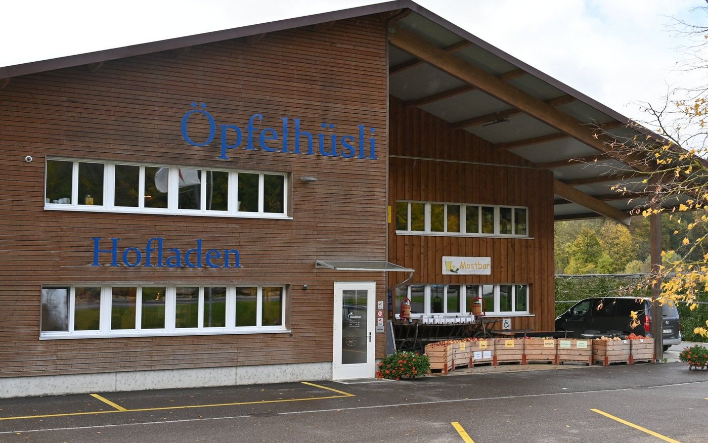 David Lüthi hat mit seiner Entscheidung keineswegs in den sauren Apfel gebissen. Der Obstbaumeister hat Anfang Jahr mit seiner Frau Marina den Ramlinsburger Familienbetrieb Lüthi Obstbau von den Eltern Ernst und Ester Lüthi übernommen und bereut es nicht. Beide Elternteile arbeiten nach wie vor im Betrieb mit. Zu diesem gehört seit 2018 das grosse Betriebsgebäude im Nachbardorf Hölstein. Es beherbergt die Büro-, Verarbeitungs- und Kühlräume sowie das über die Region hinaus bekannte «Öpfelhüsli», ein grosser Hofladen. Nebst dem Verkauf von Frischobst stehen selbst hergestellte Produkte wie Trockenobst, Sirups, Konfitüre und Süssmost in den Regalen. Zugekauftes wie Fleisch, Eier, Gemüse, Spirituosen und Milchprodukte ergänzen das Sortiment.