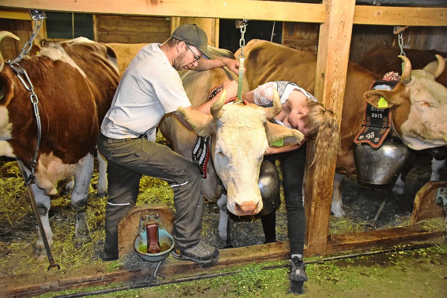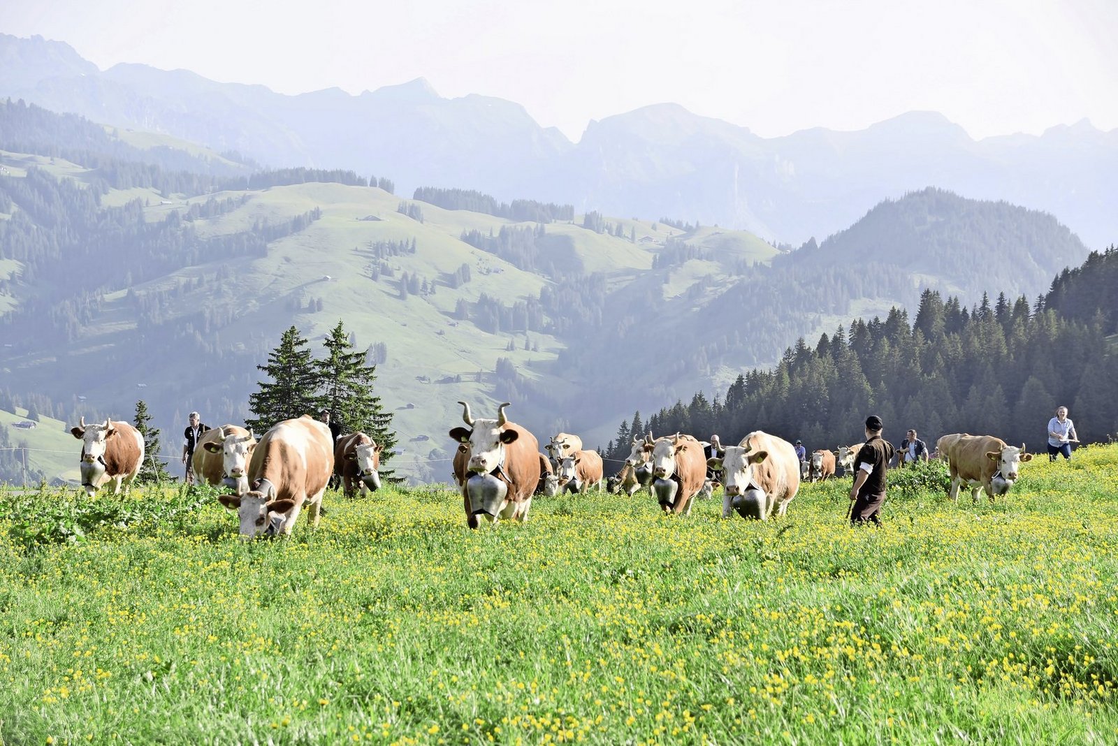 Eine Kuh nach der anderen trifft bei der Alphütte ein. Geduldig warten sie, bis man ihre Treichel löst. Jetzt geht es auf die Weide, das frische Berggras ruft. Auf der Alp sind die Kühe nachts draussen. Hier oben hat man ein Bergpanorama, das weit über das Saanenland reicht. «Wir fühlen uns hier oben wie zu Hause», sagt das Älplerehepaar. Da gehört es sich, dass man hier oben die Nacht verbringt, obwohl man fast jeden Tag auf dem Talbetrieb hinunterfährt. Rund drei Monate bleiben von Grünigens hier oben auf dem Berg. Dann heisst es am 6. September, wenn die Gstaad-Züglete stattfindet, wieder talwärts ziehen. «An der Gstaad-Züglete sind wir einer von vielen Betrieben, die mit ihren Tieren teilnehmen, da sind wir gerne auch dieses Jahr wieder dabei», freut sich der Landwirt.