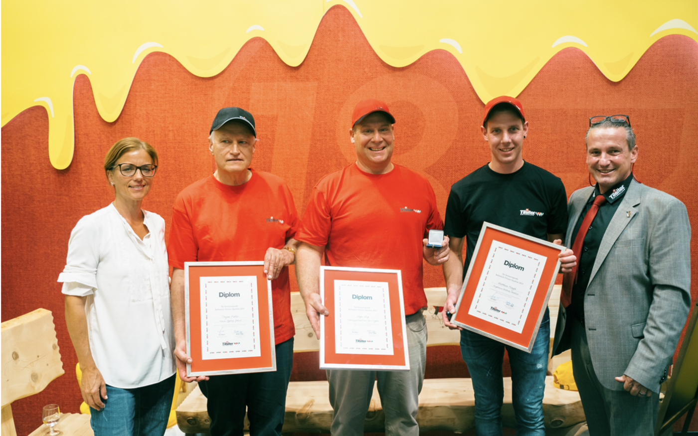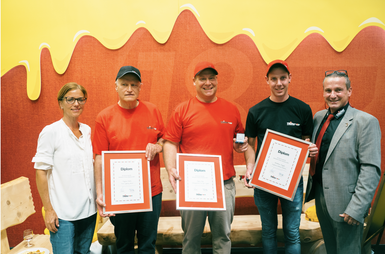 Wie es Tradition ist, erhielten die prämierten Tilsiter-Käsereien eine Urkunde und ein Goldvreneli. Die Übergabe fand am Stand der Sortenorganisation an der Olma in St. Gallen statt, der in diesem Jahr neu designt und mit innovativen Produkten zum Degustieren die Besucher anlockte.