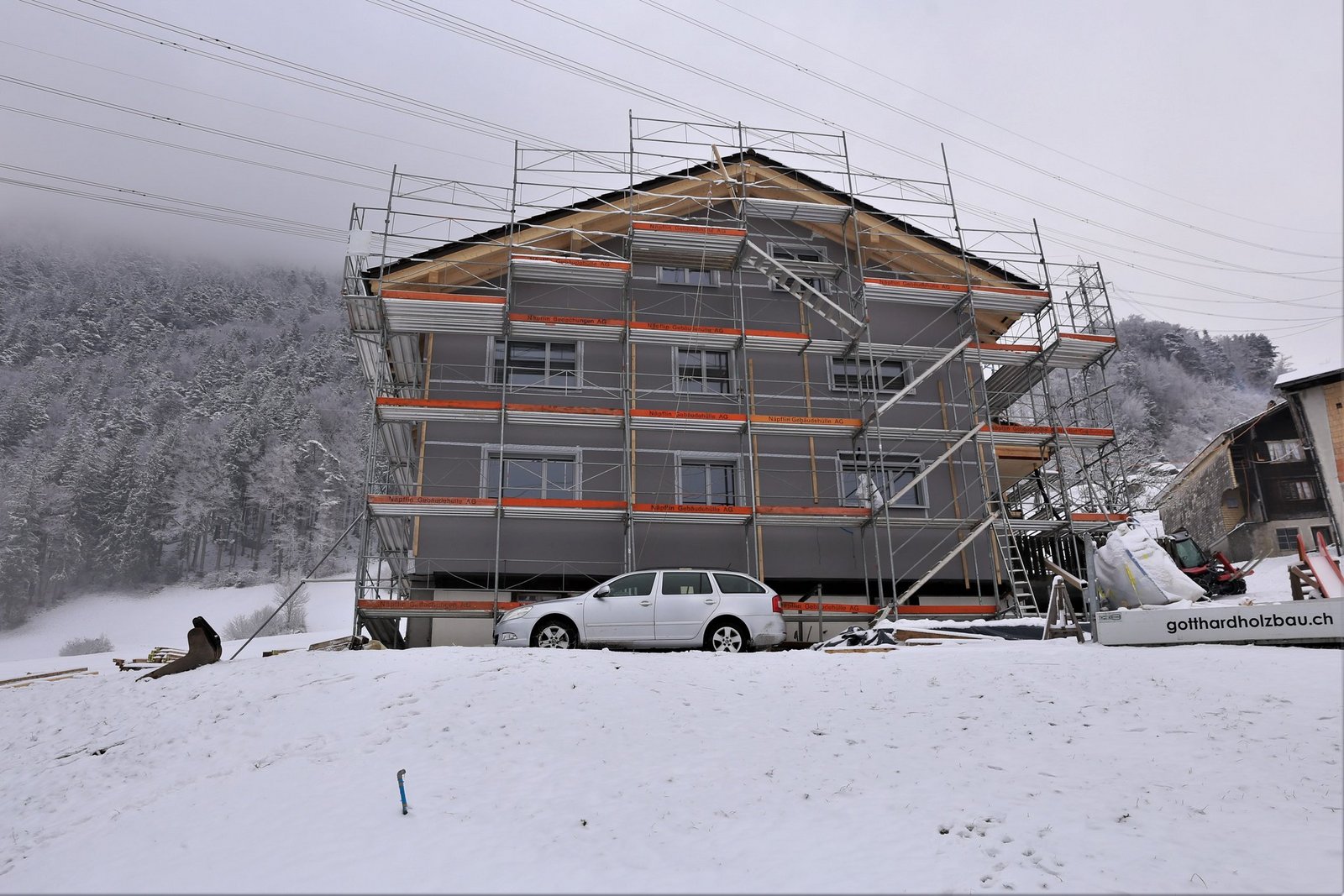 Das grösste Geschenk der Familie war aber am Weihnachtstag nicht eingepackt, sondern eingerüstet. Das neuerstellte Wohnhaus ist zwar noch im Rohbau, die Vorfreude darauf ist dennoch bereits riesig. Der Zügeltermin ist im kommenden Frühjahr geplant. Mit dem Einzug ins neue Zweifamilienhaus wird auf dem Heimet Unteraxen eine jahrelange Bauphase abgeschlossen. Bis vor neun Jahren war der Bergbetrieb nur durch eine Seilbahn erschlossen. Das Vieh wurde in mehreren in die Jahre gekommenen Ställen betreut und auch die Wohngebäude hatten Renovationsbedarf.