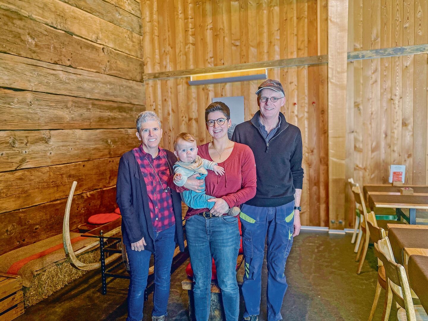 «Wir haben fast alles in Eigenregie umgebaut», sagt Egon Hischier. Er wiegt den acht Monate alten Tim in den Schlaf, den Sohn von Anina Ambauen. Während der Wintersaison ist die Hofbeiz fast täglich ab 13 Uhr geöffnet. Im übrigen Jahr werden auf Anmeldung Gruppen bewirtet. Das passt zum Rhythmus des Landwirtschaftsbetriebs.