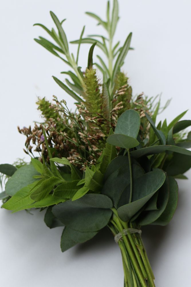 Die Zutaten für ihr Kräutersträusslein findet sie wie meistens rund ums Haus. Da wachsen klassische Kräuter wie Rosmarin und die oben genannte Verveine, auch Zitronenverbene oder Eisenkraut genannt. Diese Kräuter werden vor dem Binden «geputzt», das heisst, die untersten Blätter werden entfernt.