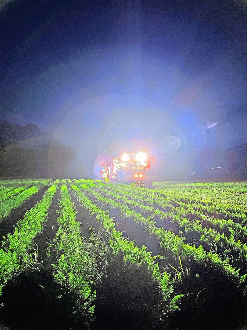 Auf Bestellung unserer Abnehmer ernten wir die Karotten und liefern sie nach Bad Ragaz oder Oberriet oder sie werden abgeholt. Wie viel wohin geliefert wird, ist schon vertraglich geregelt und vereinbart. Die Ausbeute, also der Anteil an Karotten, die den Qualitätsanforderungen entsprechen, ist bedeutend besser als letztes Jahr. Das freut uns, denn letztes Jahr war es aufgrund des nassen Wetters schwierig, zu guten Bedingungen zu ernten. Der Abgang, also der Anteil an faulen und gesprengten Karotten, war leider sehr hoch.