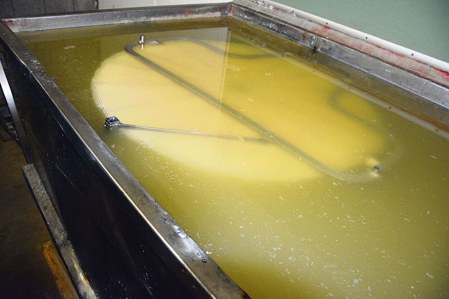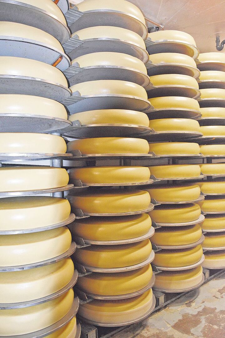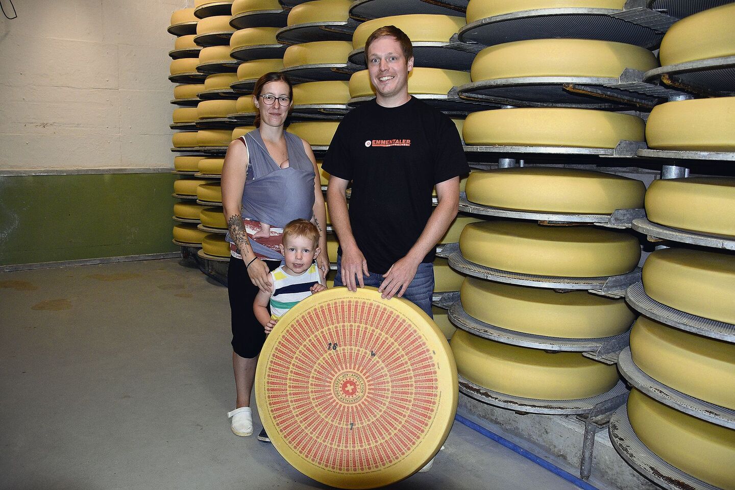 Beim Betriebsrundgang wird klar, auf welche Erfolge man setzt: «Zurzeit werden täglich rund 11 500 kg Milch angeliefert», so der Käser. Die Milch bringen die Bauern nicht selber in die Käserei, sondern sie wird jeweils am Abend mit einem Milchtransport auf den Betrieben zusammengeführt. Das Pflichtenheft des Emmentalers AOP sieht vor, dass die Milch innerhalb von 24 Stunden verarbeitet werden muss. Und so steht auch der Käser unter Druck: «Morgens um vier Uhr, noch bevor der erste Lieferant mit Melken beginnt, müssen wir mit dem Käsen beginnen», erzählt Lukas Känel den Ablauf. Um 11.30 Uhr sei die Käsearbeit jeweils zu Ende. Dann kommen die produzierten Laibe für zwei Tage in ein Salzbad. Für weitere drei Monate reife der Käse in ihrem Keller, bevor er dann an die Emmi verkauft werde, um dort für mindestens einen Monat weiter zu reifen. «Nicht nur bei uns kontrollieren wir unseren Emmentaler auf seine Qualität, spätestens bei der Emmi werden die Laibe stichprobenweise taxiert», so Känel. Die Käse werden nach Aussehen, Teig, Lochung und Geschmack punktiert. «Alles über 18 Punkten ist die erste Klasse», sagt der Käser. Das Ziel sei jedoch einen Schnitt von über 19 Punkten zu erreichen, was immer eine höhere Produktionsfreigabe zur Folge hat. «Da sind wir natürlich bestrebt, immer nur beste Qualität zu liefern», so der Käsermeister. Und wie kommen eigentlich die berühmten Löcher in den Emmentaler? «Das hängt mit den Kulturen und mit dem Reifungsprozess zusammen», sagt Känel.