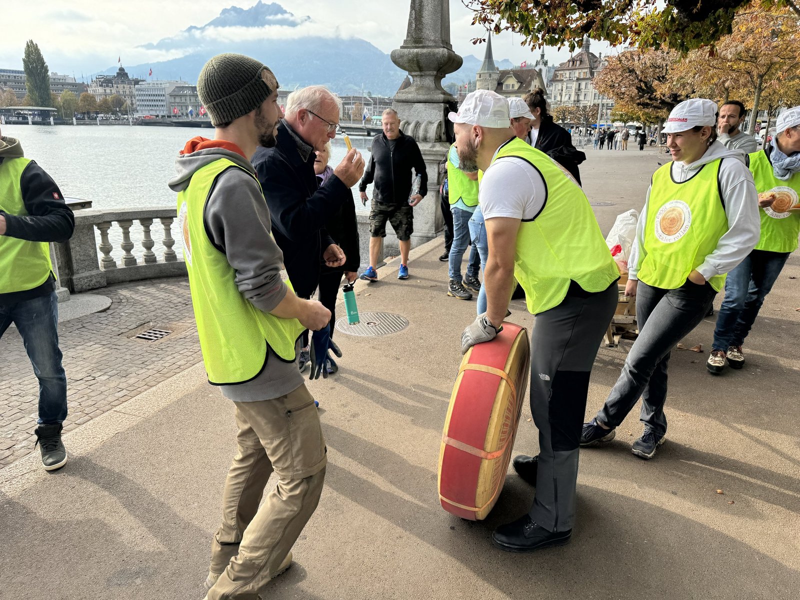 In Luzern standen für das Team einen Lern-Parkour über die Käseherstellung mit über 400 Kindern in der Primarschule Säli, eine Emmentaler Verkostung an der Hotelfachschule Luzern und ein Besuch im Verkehrshaus der Schweiz auf dem Plan. «Bei den vielen Kilometern in Luzern durften wir wieder auf die Unterstützung von Schwingerkönig Matthias Sempach zählen.»