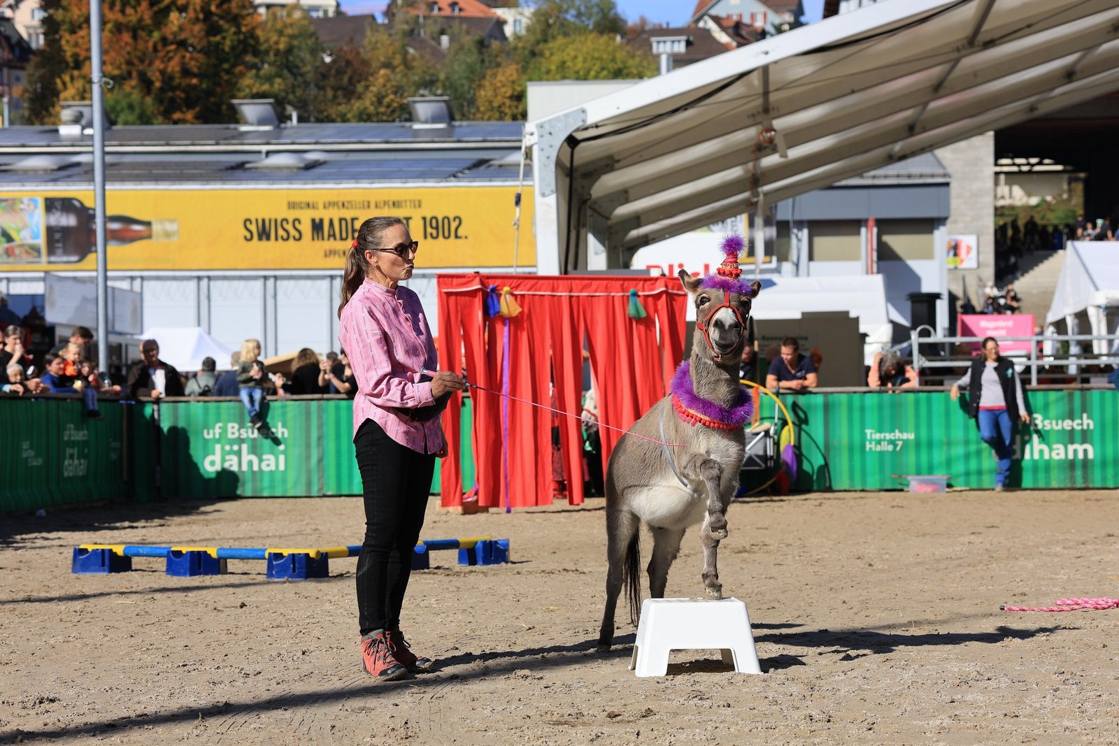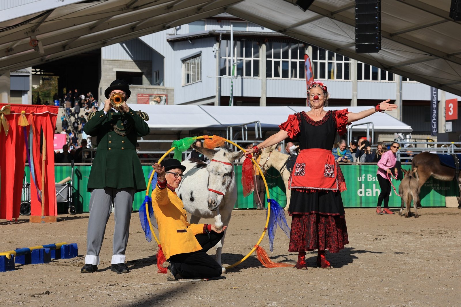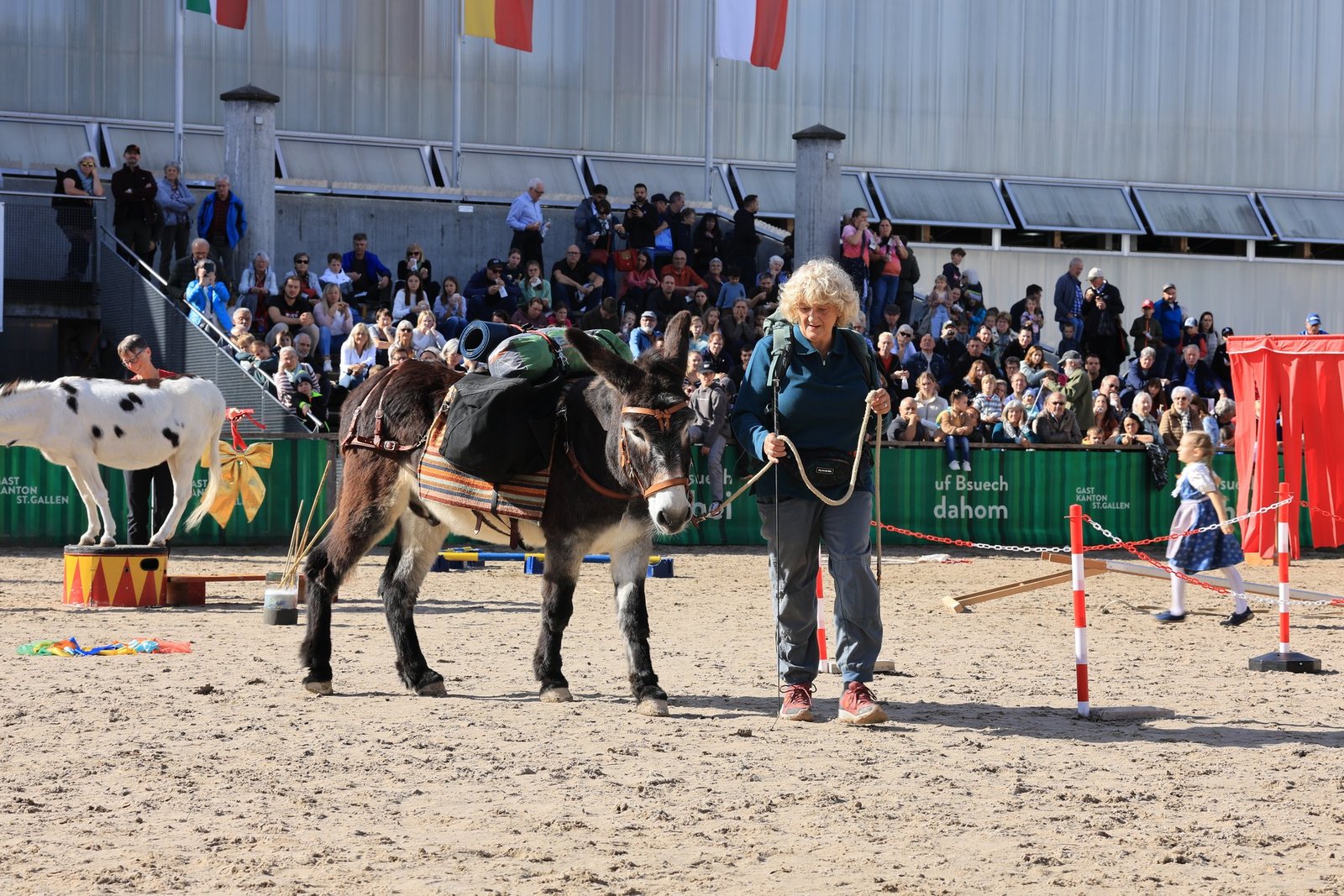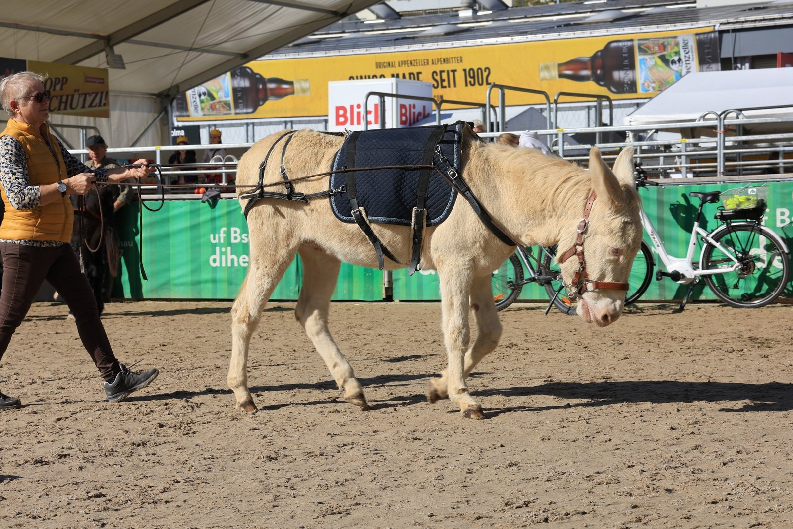 In der Olma-Arena standen für einmal keine Kühe drin, sondern es waren verschiedene Eselsrassen auf Platz. Die Besitzer und ihre Esel zeigten jeweils mit ihrem Esel eine bestimmte Showeinlage.