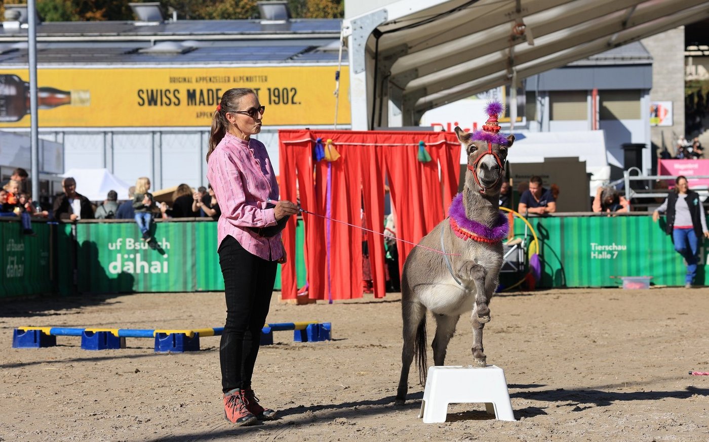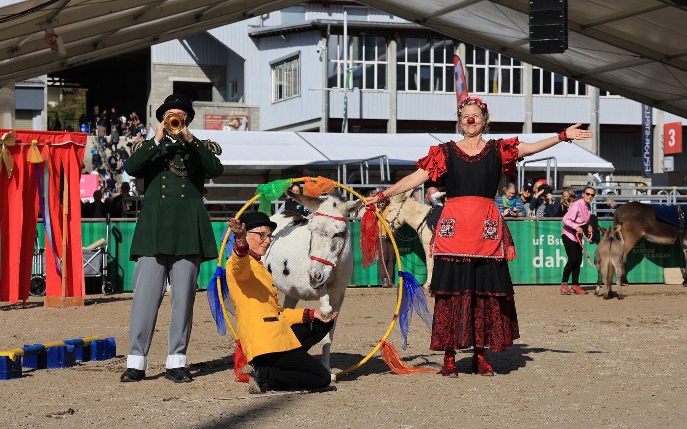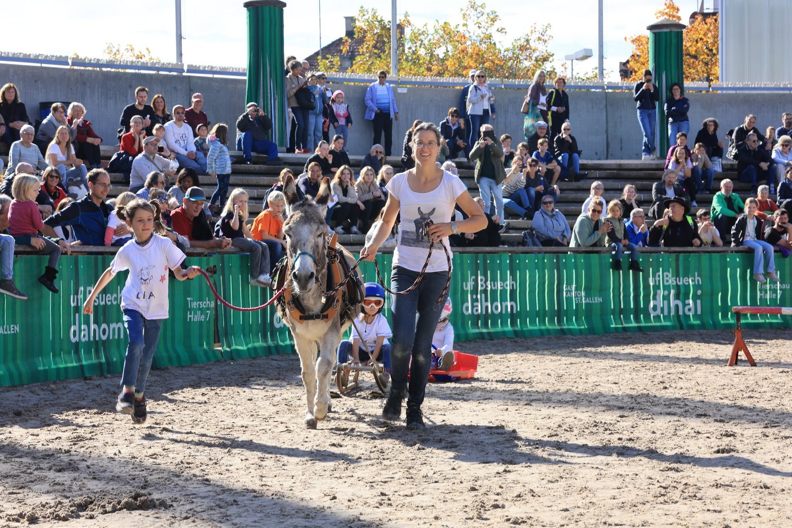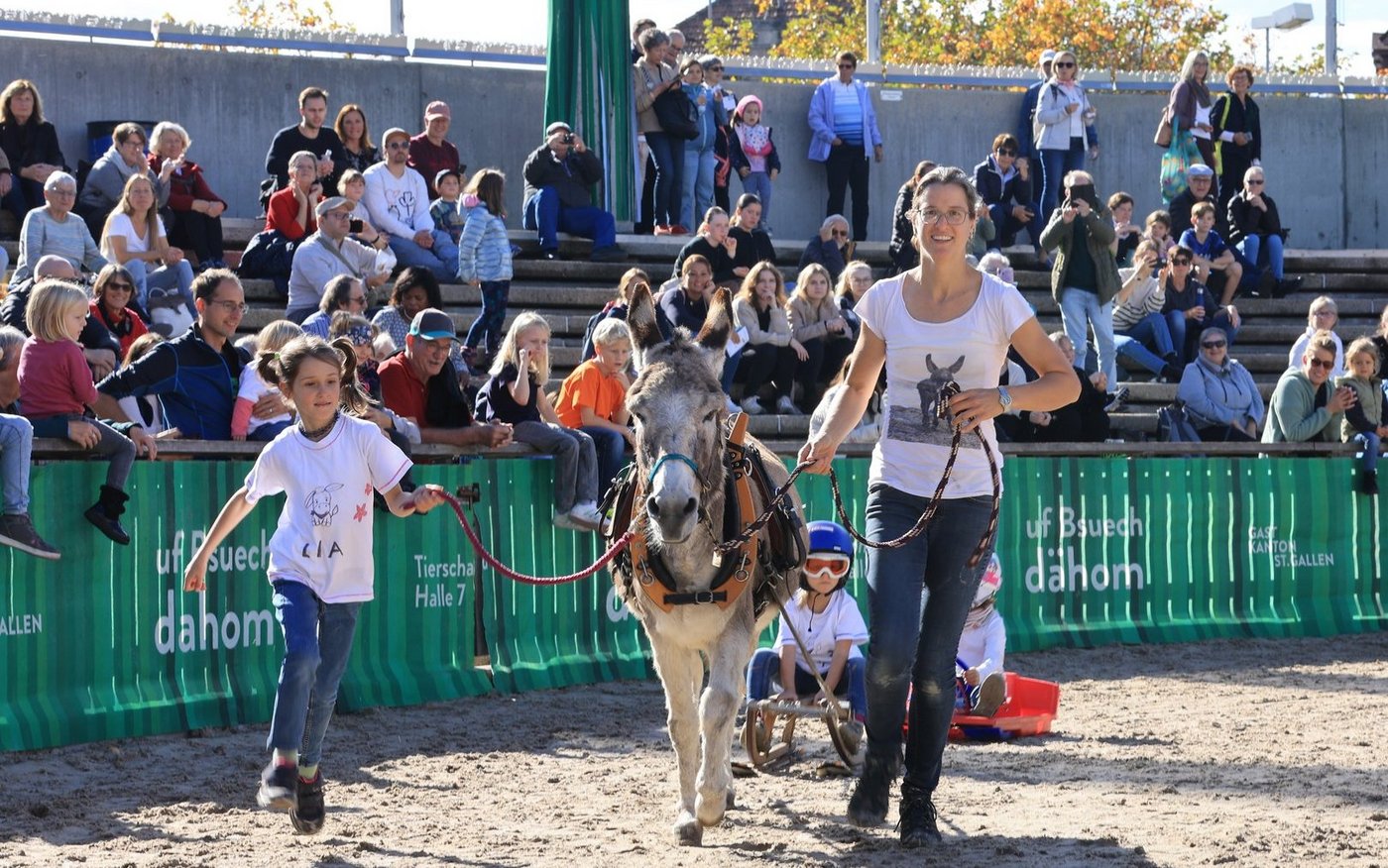 In der Olma-Arena standen für einmal keine Kühe drin, sondern es waren verschiedene Eselsrassen auf Platz. Die Besitzer und ihre Esel zeigten jeweils mit ihrem Esel eine bestimmte Showeinlage.
