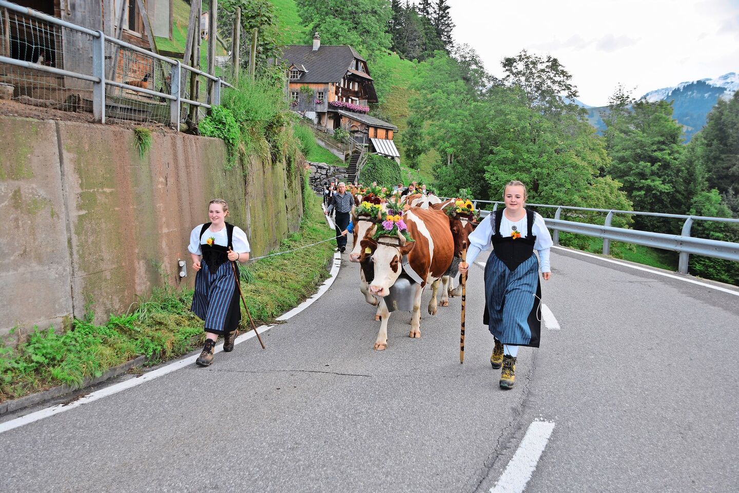 In Röthenbach nehme man immer Zmittag und mache anderthalb Stunden Pause. Dann gehe es weiter Richtung Würzbrunnen-Chiuchli hinauf und von dort in Richtung Immenägerten. Es ist das zweite Mal, dass die Familie Beat und Karin Haldimann, mit ihren Töchtern Lea, Antonia und Rahel, mit ihren Kühen den ganzen Weg zu Fuss geht. «Wir schwärmen von der Alpabfahrt, sicher ist dabei aber der Autoverkehr nicht zu unterschätzen», weiss der Landwirt.