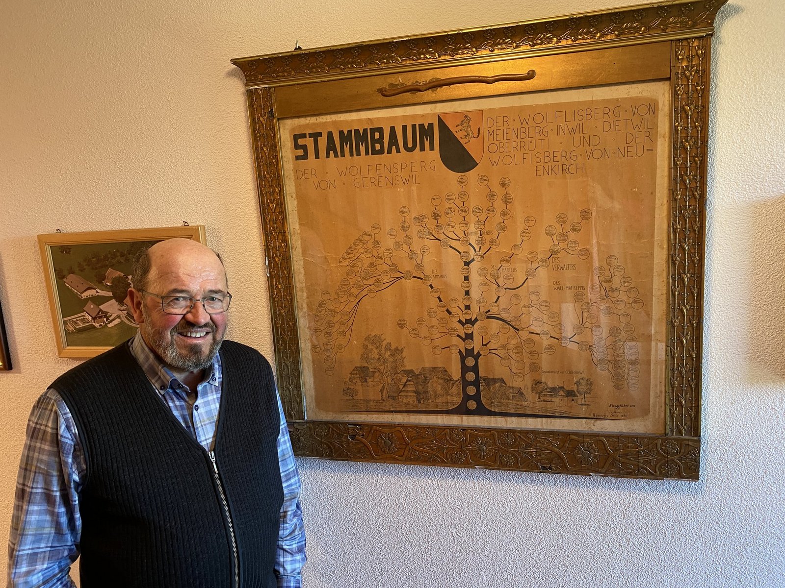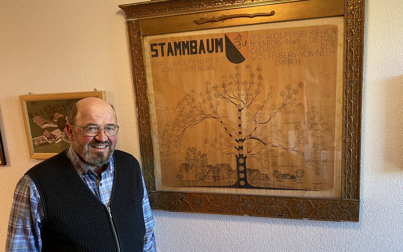 Leo Wolfisberg zeigt im Korridor auf den gerahmten alten Stammbaum der Familie. «Hier sieht man, wie alles seinen Anfang nahm.» Um die 222 Jahre alte Familiengeschichte auf dem Hof gebührend zu feiern, initiierte er diesen August ein grosses Familienfest. «Es kamen 135 Leute. Die Jüngsten waren knapp einjährige Zwillinge, die Älteste eine 91-Jährige.» Es soll nicht das letzte Fest sein. «In 11 Jahren, also 2033, feiern wir 233 Jahre Familie Wolfisberg. Das wäre wieder ein Grund zum Feiern.»