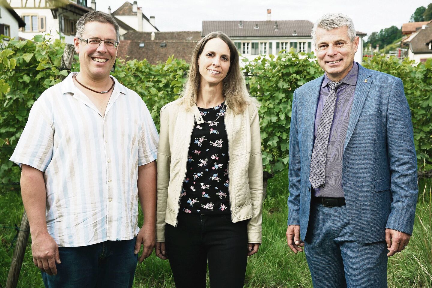 Remo (v. l. n. r.) und Sandra Giauque-Kunz aus Ligerz wurden von Regierungsrat Christoph Ammann als Berner Winzer 2021 ausgezeichnet. Die Tropfen diverser Bielersee-Winzer(innen) kommen auch national und sogar international gut an. Davon zeugen zahlreiche Preise und Auszeichnungen.