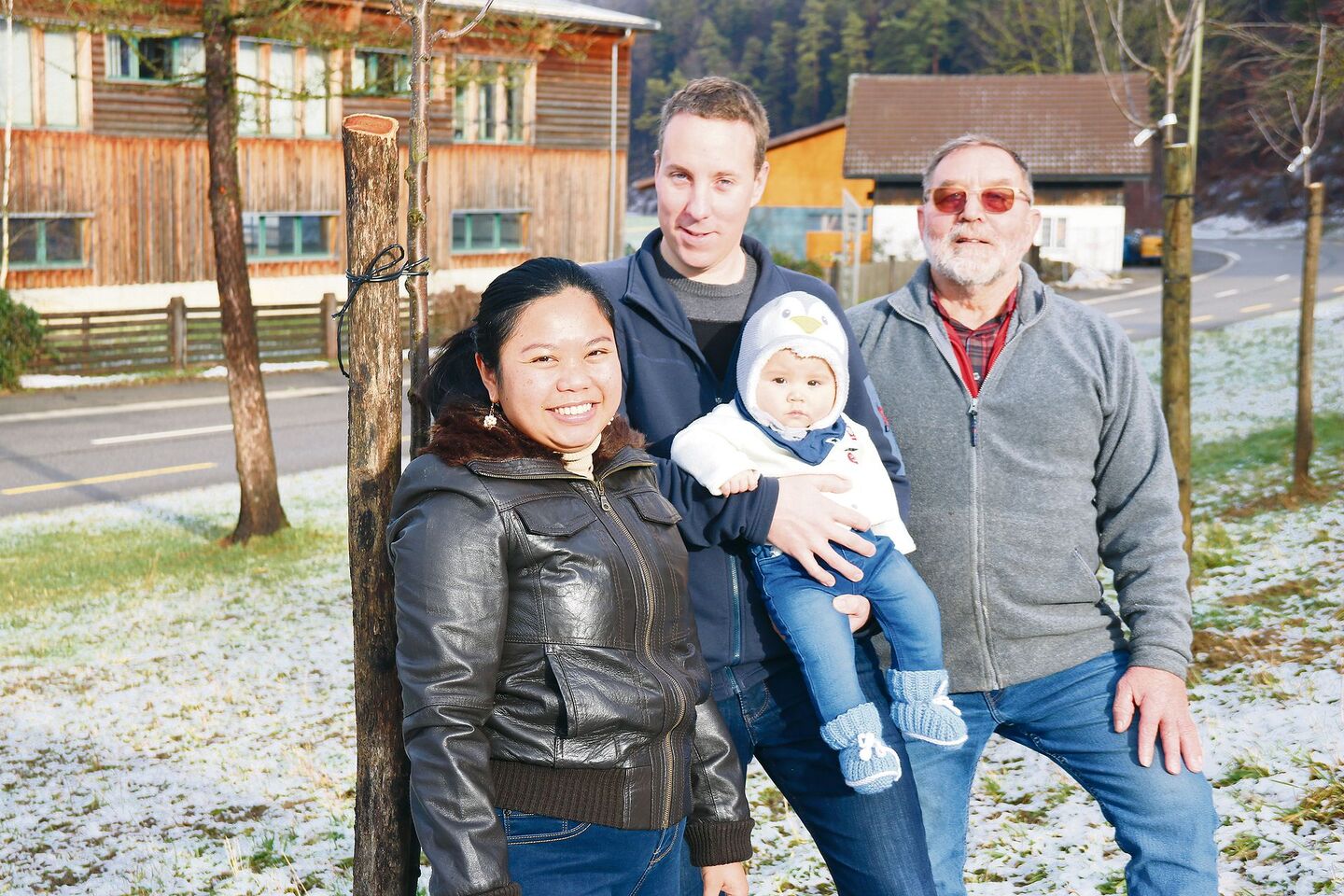 Hans Häfelfinger (rechts) aus Diegten im Baselbiet ist seit Beginn der Biolandbau-Bewegung mit Überzeugung dabei. Dass nun Sohn Niklaus mit seiner Frau April und Söhnchen Fabian den Hof ebenfalls biologisch weiterführt, erfüllt den überzeugten Biolandwirt mit grosser Genugtuung und Freude.