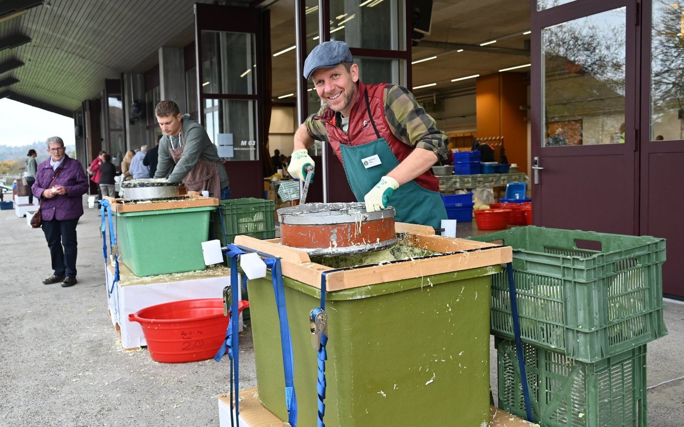 Monika Tellenbach, Fachlehrerin Hauswirtschaft am Wallierhof, ist eine der zahlreichen Helferinnen, die den Besucherinnen bei Bedarf mit Rat und Tat zur Seite stehen. Sie erklärt, dass ab dem Samichlaustag, also dem 6. Dezember, das erste Glas mit Sauerkraut, das an der Chabishoblete abgefüllt wurde, zum Verzehr bereit sei. Ist das Glas einmal geöffnet, sollte das Sauerkraut im Kühlschrank aufbewahrt und binnen einer Woche aufgebraucht werden. Das vollständige Rezept für Sauerkraut im Glas gibt es hier. Nebst dem Einfüllen in Gläser, besteht an der Chabishoblete auch das Einmachen im Gärtopf. Hier geht es zum Rezept für Sauerkraut im 10-Liter-Gärtopf.