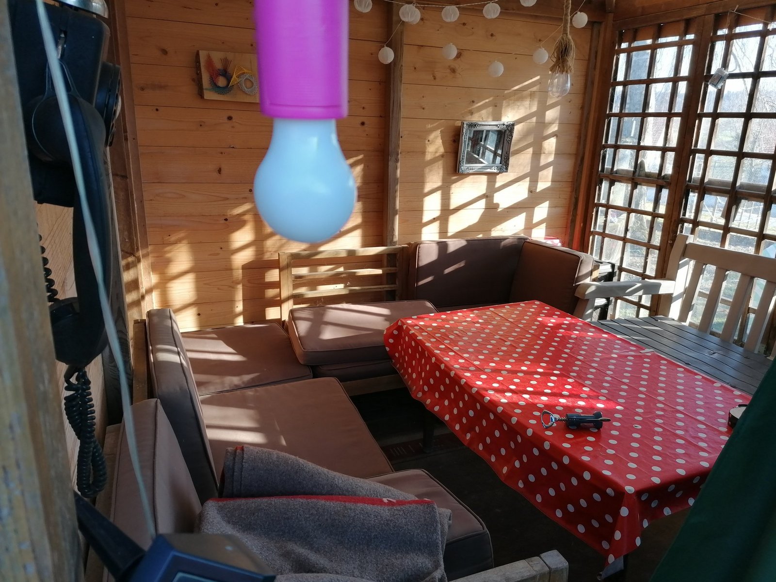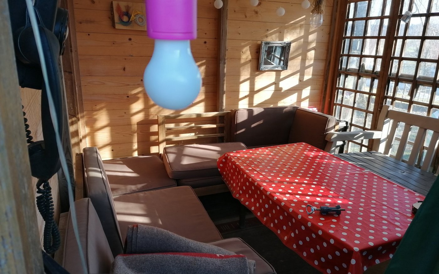 Nicht nur jedes Tier hat seinen Platz im Gehege des Brunnacher-Zoos. Der Pavillon zwischen Ginko, Birnenbaum und Birke lädt ein zu Mussestunden nach einem Grillabend im Sommer oder zu einem Fondue im Winter. Aber auch die Kaninchen schleichen sich ab und zu hinein und machen auf der weichen Unterlage des Sofas ein Nickerchen. Und so erklärt sich auch der Salzstängeli-Raub der frechen Hühner.