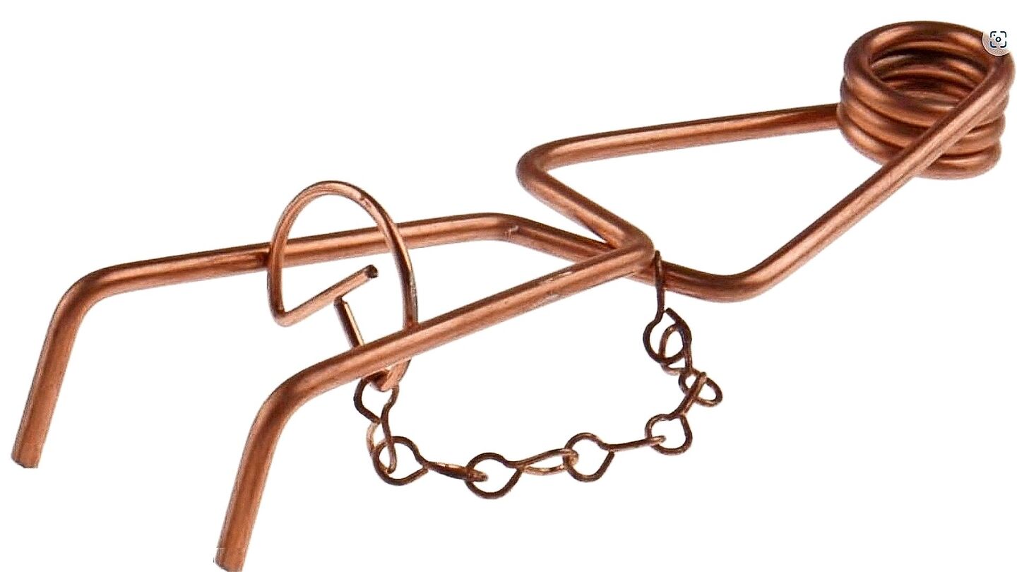 Nun, Erwachsenen war damals zu glauben. Erst später realisierte ich, dass ich da brandschwarz angeschwindelt worden war. Immerhin: Als Assistent beim Mäusefang konnte ich mich bereits betätigen. Es galt, in der Nähe der Erdhaufen eine weiche Stelle zu finden. Die verriet, dass da unter der Grassode ein Gang durchführte. Diese Mäusepassage war nun ein Stück weit freizulegen. Dann konnte die Falle in den Gang installiert werden. Eine Drahtfalle erfordert zum Spannen Kraft und Fingerspitzengefühl. Die Fangarme der Drahtfalle, in der Mitte überkreuzt, gingen beim Zusammendrücken in der vorderen Hälfte scherenartig auseinander. Vorsichtig war nun das Drahtringlein dazwischen zu klemmen. Passierte die Wühlmaus später diesen Gangabschnitt, touchierte sie den Auslösering und die Arme der Drahtfalle schlugen zu: Genickbruch, Exitus.