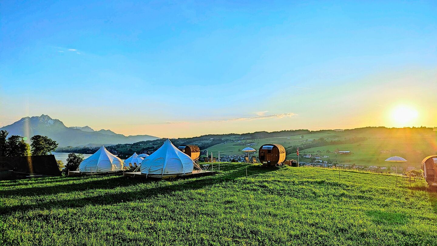 Der Vierwaldstättersee und der Pilatus liegen einem zu Füssen, im Rücken die majestätische Rigi. Die Lage vom Hof Stadelmatt in Küssnacht ist sehr eindrücklich. «Ja, wir sind mit unserem Panorama schon sehr privilegiert. Wir wohnen da, wo andere Ferien machen», erklärt Gastgeberin Carmen Gisler nicht ohne Stolz. Und Ferien machen auf dem Hof der Familie Gisler aktuell richtig viele Leute. Seit mehr als einem Jahr bieten sie während der wärmeren Jahreshälfte etwas oberhalb von Küssnacht unkonventionelle Unterkunftsmöglichkeiten an, welche fast immer ausgebucht sind. «Wir stellten unser Übernachtungsangebot im April 2023 auf Airbnb, ab Mai waren wir fast täglich besetzt», erzählt Pirmin Gisler.