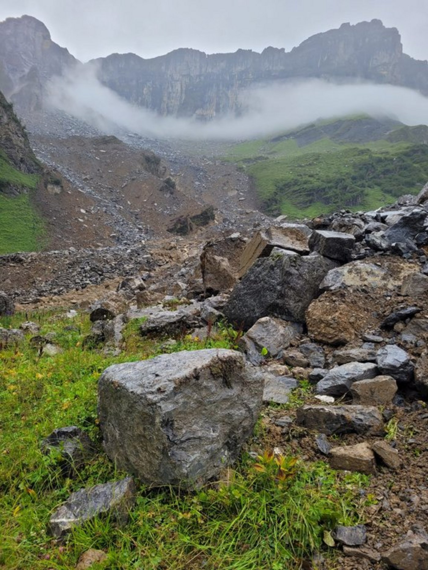Darauf folgend wurde die mutmassliche Abbruchstelle mit Lasermessgeräten überwacht. «Die Messungen zeigten, dass sich der Fels innerhalb weniger Tage um 15 Zentimeter verschob», so Gwerder weiter. Vor rund zehn Tagen wurde ihm dann von den Behörden empfohlen, seine noch im Gefahrengebiet weidenden Tiere abzutreiben. «Die Zusammenarbeit mit dem Krisenstabschef und dem Kanton verlief vorbildlich», betont Bernhard Gwerder rückblickend. Am vergangenen Sonntag gegen 16 Uhr stürzten dann rund 450 000 Kubikmeter Fels ins Tal. Dank den wertvollen Informationen der präzisen Messgeräte kamen in diesem Wandergebiet glücklicherweise weder Mensch noch Tier zu Schaden, hingegen gingen grossflächig gute Weideflächen verloren. «Die gewaltigen Schuttablagerungen gingen bis ins Gebiet Vorder Chanzel, wo sich unser bestes Weidegebiet und auch eine gute und wichtige Wasserquelle befanden», so Älpler Gwerder.