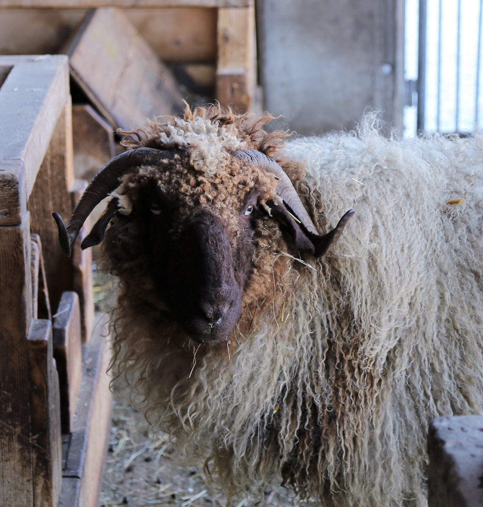 Tiere: Hinterwäldler Rinder, Walliser Landschafe, Wollhaarige Weideschweine, Maultiere und ein paar Hühner