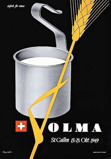 Was als Ostschweizerische Land- und Milchwirtschaftliche Ausstellung startete, wurde später zur Schweizer Messe für Land- und Milchwirtschaft und entwickelte sich bis heute zur Schweizer Messe für Landwirtschaft und Ernährung. Dieses Jahr findet die Olma zum 82. Mal statt, wie immer in St. Gallen. Wie immer mit Wurst – aber ohne Senf. Und beim Thema Olma-Bratwurst ist man schon direkt im Politikum rund um die Plakatgeschichte der Messe. Diese hat nämlich eine lange Tradition.