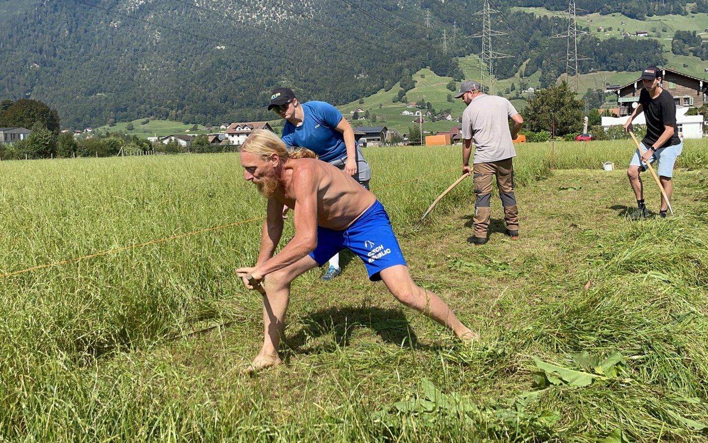 140 Teilnehmer mähten an der 38. Innerschweizer Handmähmeisterschaft im schwyzerischen Ingenbohl um die Wette. Bis 40 Meter lang und rund 2,5 Meter breit war das Wiesenstück, das die Mäherinnen und Mäher möglichst schnell und sauber mähen mussten. Erwin Schuler aus dem schwyzerischen Goldau und Marianne Frischknecht aus der Toggenburger Gemeinde Nesslau holten dabei den Tagessieg. Aber nicht nur die besten Mäherinnen und Mäher aus der Schweiz zeigten ihr Können. Der Tscheche David Vostrovsky sorgte auf dem Felderboden mit seinem Einsatz für internationales Flair. Mit neun Stunden Fahrzeit hatte er sicher den längsten Anfahrtsweg.