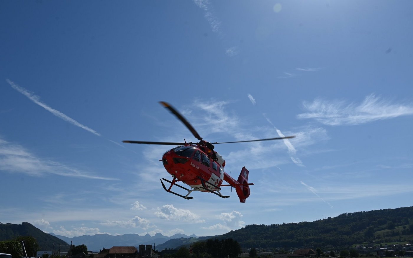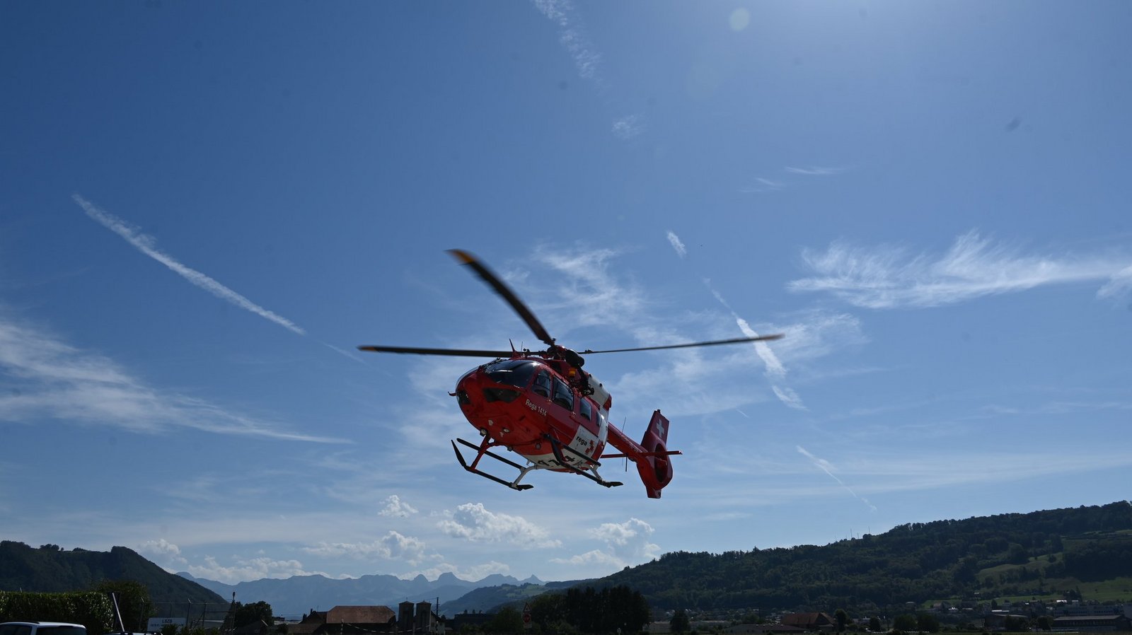 Der Rettungshelikopter hebt ab