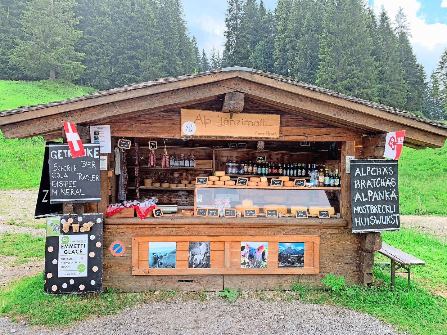 Für die Schotteverwertung werden 30 Alpschweine gehalten, deren Fleisch wird im Herbst selber vermarktet. Weil anfänglich die jungen Schweine noch nicht alle Schotte saufen können, wird ein Teil den Kühen verfüttert. Und nur von Schotte allein würden die Schweine auch nicht feiss, es brauche schon auch etwas Kraftfutter. Das sind dann aber sicher Bio-Alpschweine, wenn doch auch der Talbetrieb Bio ist, will ich wissen. Nein, sagt Eberli, Alp-Bio sei gar nicht nötig. Zudem kaufe er konventionelle Milch von der Nachbarsalp, und Bio-Ferkel und Bio-Futter wären viel zu teuer. «Bei Alpkäse fragt niemand nach Bio.» Die Direktvermarktung von Alpprodukten funktioniere auch so sehr gut, die Kunden würden vor allem Wert auf die Regionalität und den persönlichen Bezug zum Produzenten legen, sagt Eberli. Die Vermarktung von Alpkäse sei in der Region aufgrund der vielen Produzenten zwar schon etwas unter Druck, da müsse man sich mit einem breiten Sortiment und Spezialitäten halt etwas abgrenzen. Guten Umsatz machen Eberlis mit dem bedienten Verkaufsstand beim Parkplatz der nahen Passhöhe Glaubenbielen. Gerade während der Ferienzeit würden hier teils Hunderte von Leuten anhalten. Viele seien auch Stammkunden, und es werde geschätzt, dass nicht nur viele Käse, sondern auch Würste, Glace vom Talbetrieb oder Produkte von «Guets us Obwalde» angeboten werden.