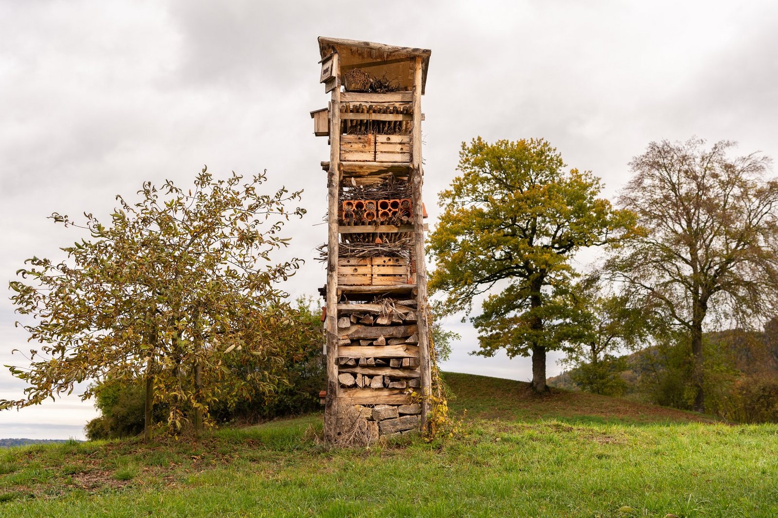 Der Lebensturm ist Artenförderung auf einem Quadratmeter. Er bietet verdichteten Wohnraum für verschiedene Tiere in unterschiedlichen Etagen. Zudem bereichert er das Landschaftsbild und sensibilisiert den Betrachter auf das Thema Ökologie und Biodiversität. Der Lebensturm dient als Symbol zur Erhaltung der biologischen Vielfalt. Insektensterben ist ein grosses Thema, so auch die Nützlingsförderung. An Wissen, wie man die Insekten gezielt fördert, mangelt es aber teils.