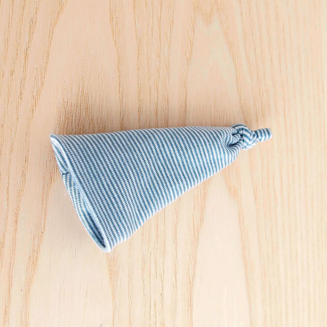 - Oben am Zipfel einen Knoten machen und den Rand umkrempeln.