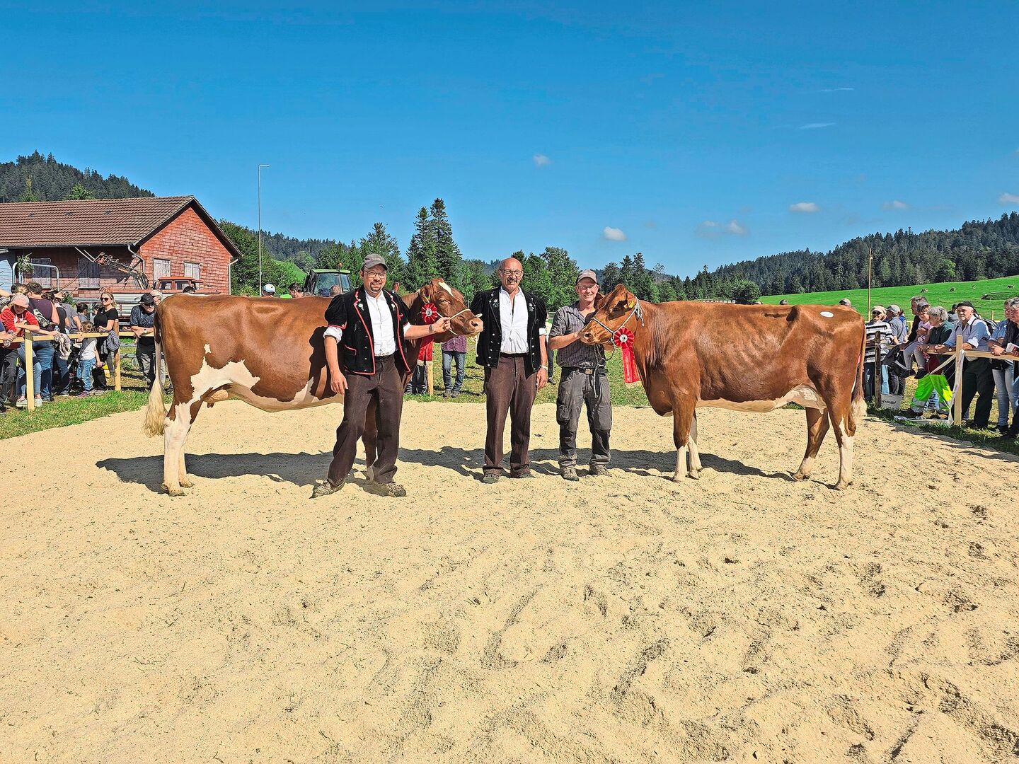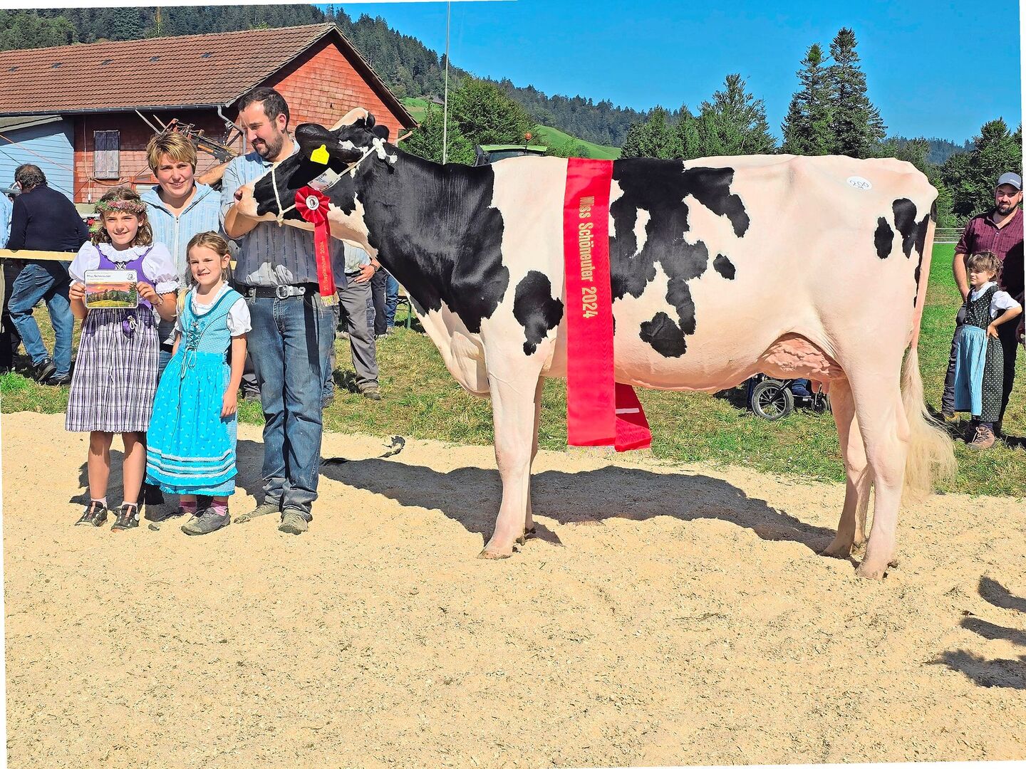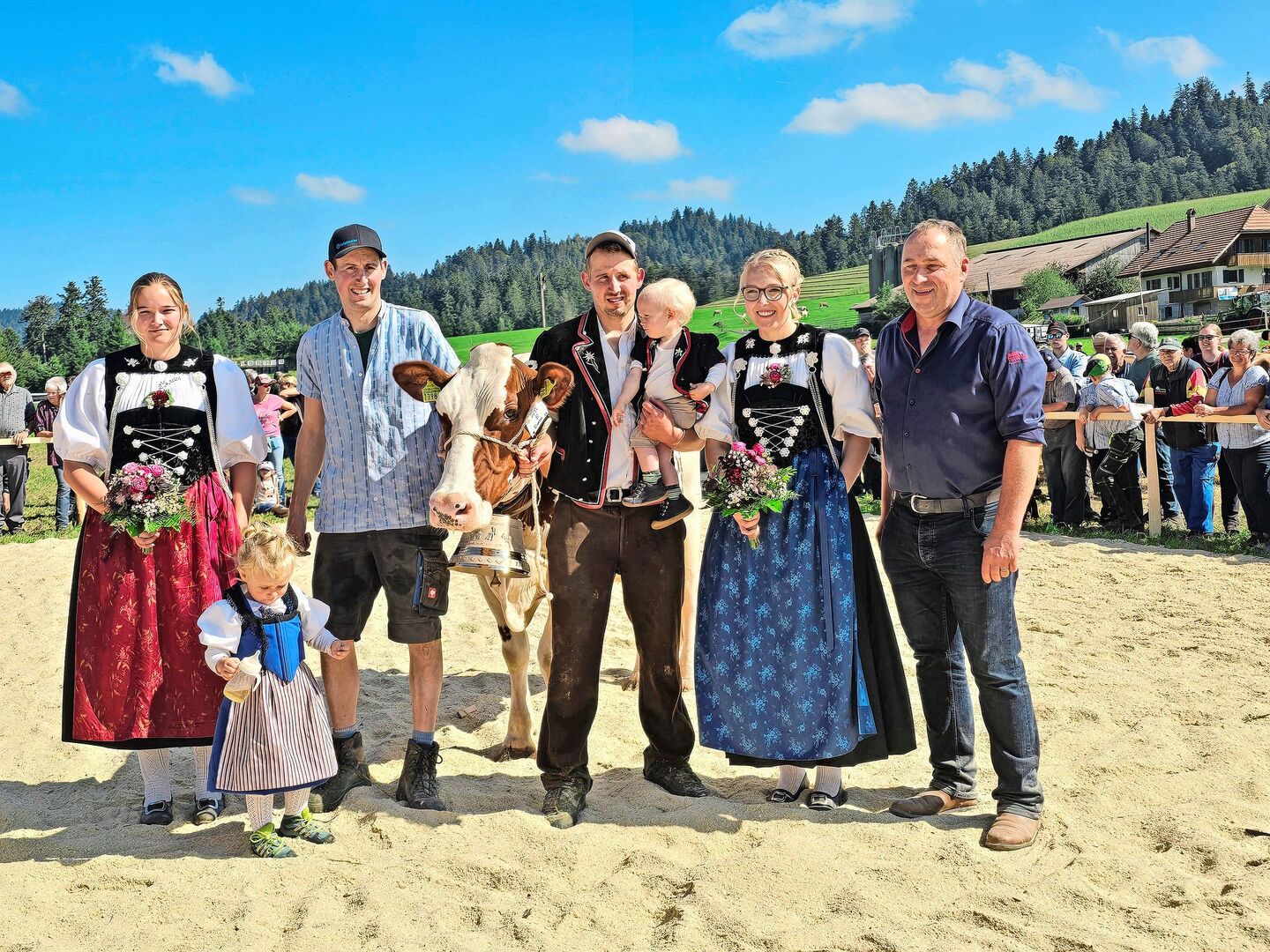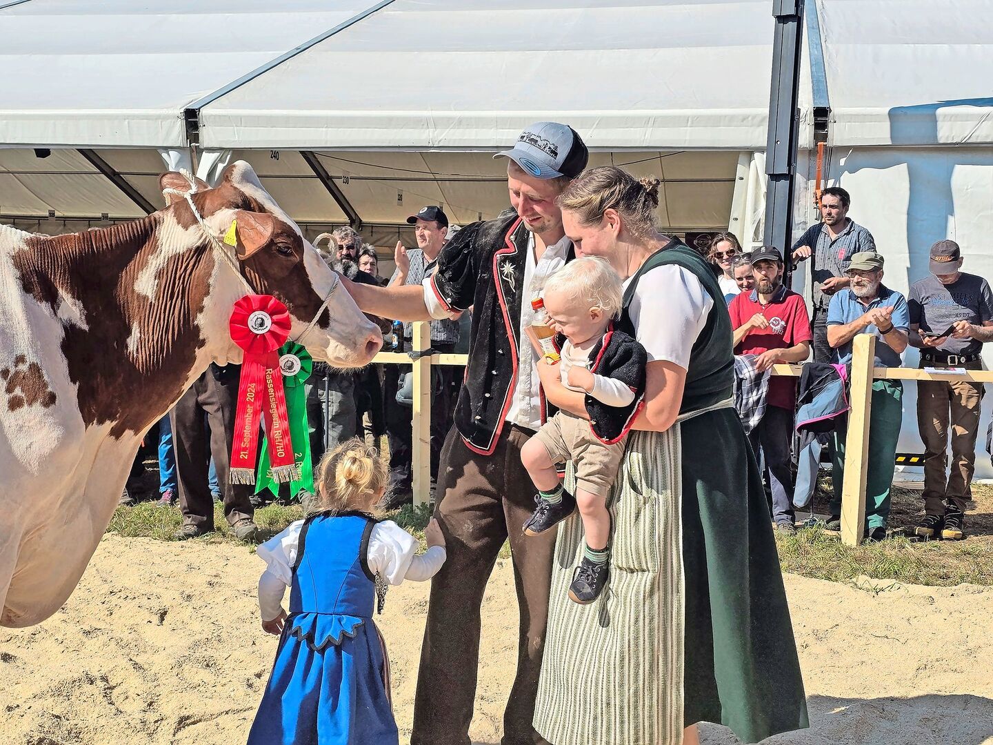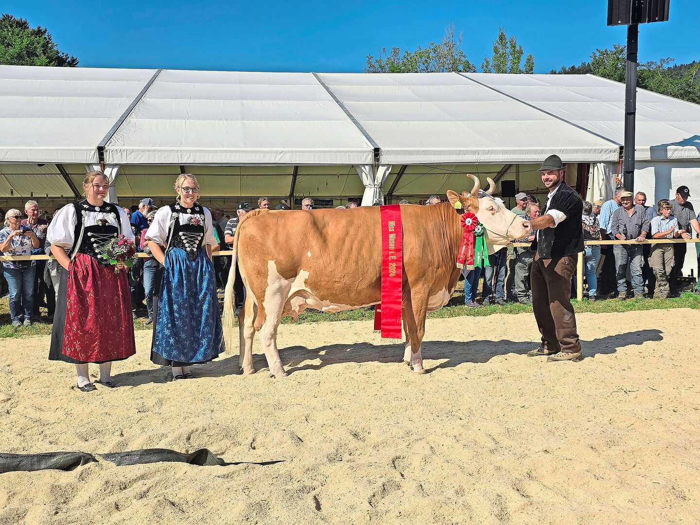 Natürlich waren auch Titel zu vergeben: Von jeder Rasse wurde eine Miss und eine Schöneuter bestimmt und zum Schluss noch eine Miss sowie eine Schöneutermiss über alle Rassen. Und auch der Kälberwettbewerb für die Jüngsten durfte nicht fehlen. Und so wird in vielen Familien wieder ein (Kälber-)Treicheli mehr hängen. Für das Publikum folgte der Höhepunkt des Jubiläums nach der Schau, als die Züchter ihre kunstvoll geschmückten Herden feierlich durch das Dorf trieben. Das Geläut der zahlreichen Treicheln und Glocken sorgte für einen wundervollen Ausklang eines unvergesslichen Tages.