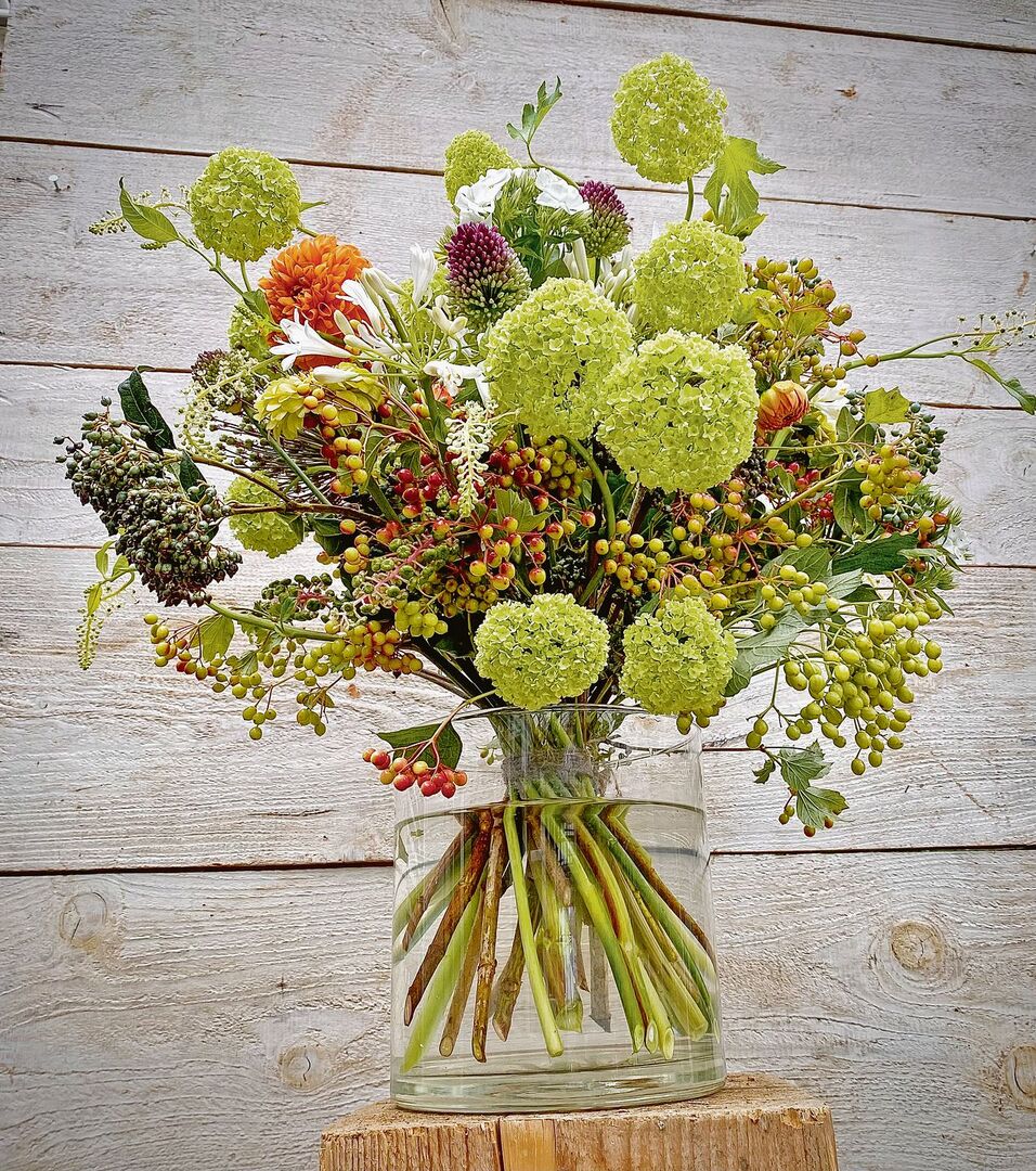 Auch wer keine Möglichkeit hat, einen Schneeball zu pflanzen, muss nicht auf seine Blütenpracht verzichten. Die Zweige und Blüten eignen sich auch für Sträusse und Blumen-Arrangements. So wird der Gefüllte Schneeball im Frühling gern in der Floristik eingesetzt. Und im Herbst sind Schneeball-Zweige mit Beeren gefragt. Besonders gut zum Schneiden eignen sich vor allem der Gefüllte Schneeball (Viburnum opulus ‹Roseum›), der Koreanische Duft-Schneeball (Viburnum carlesii) und der Kleine Winter-Schneeball (Viburnum farreri ‹Nanum›).