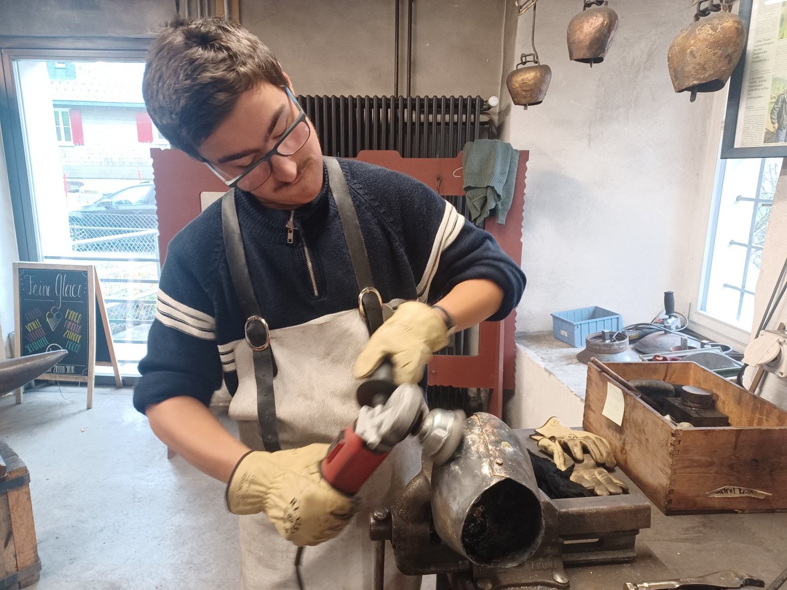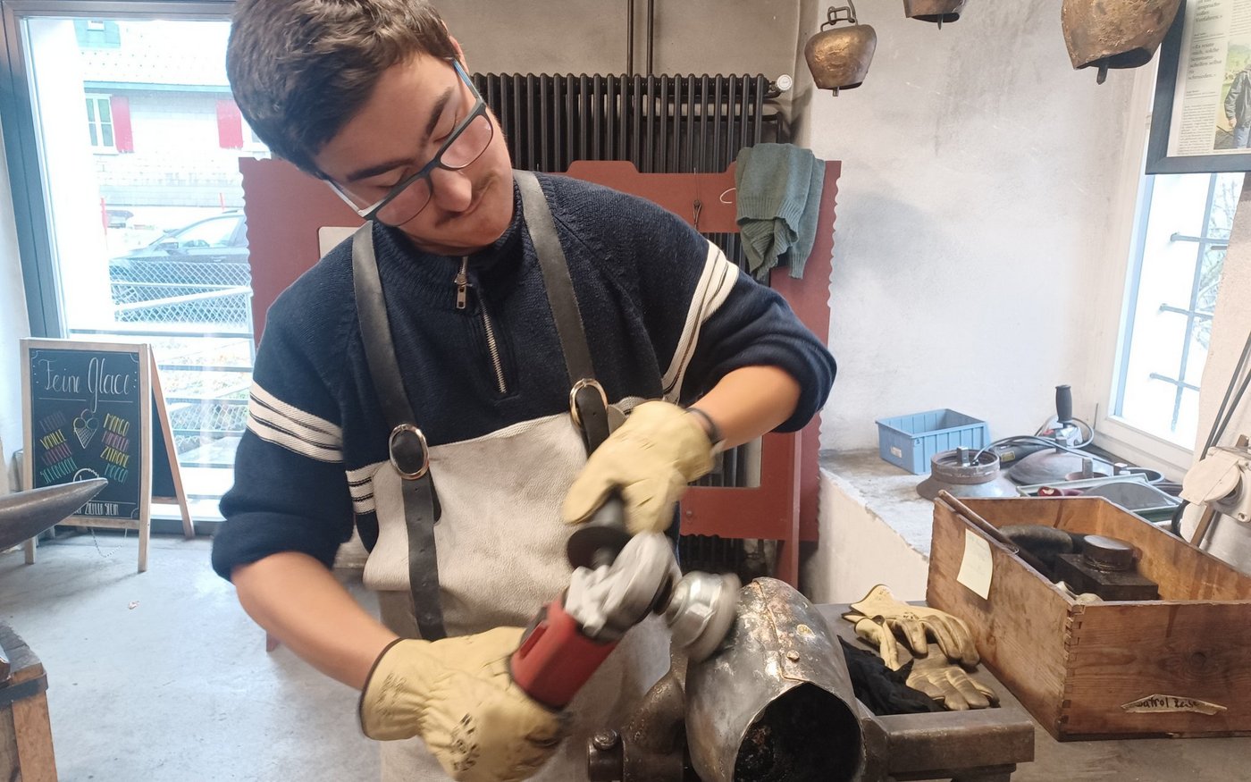 Beat lebt mit einer Beeinträchtigung: Zu viele Informationen aufs Mal oder der Trubel mehrerer Menschen um ihn herum lassen ihn schnell aus dem Konzept geraten. Deshalb durfte er sich zusammen mit Schmied René in der Werkstatt der Klangwelt Toggenburg ganz exklusiv der Herstellung einer Schelle für seine Lieblingskuh Tamina widmen.