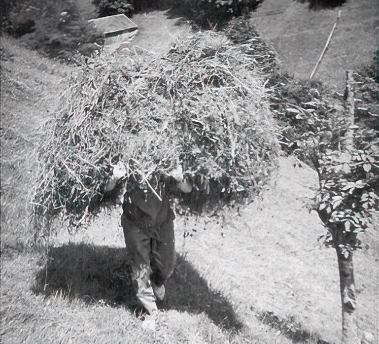 Jammern durfte ich nicht. Es gab in der Hütte kein Verbandsmaterial. Hingegen eine Flasche von Grossvaters selbst gebranntem Schnaps. Daraus wurde über die Wunde geleert. Wenn ich das schreibe, tut es mir heute noch weh. Ich habe geschrien und bin dafür ausgeschimpft worden. Eine Wehleidige sei ich, dabei sei ich die Älteste und sollte ein gutes Beispiel sein. Nachdem der Vater einen Lumpen um die Wunde gebunden hatte, gingen wir nach Hause, mit dem Einachser. Die Ladefläche war belegt mit Heu, aber ich durfte zeitweise aufsitzen. Welches Privileg, denn meistens gingen wir neben der Knattermaschine eine Stunde zu Fuss.