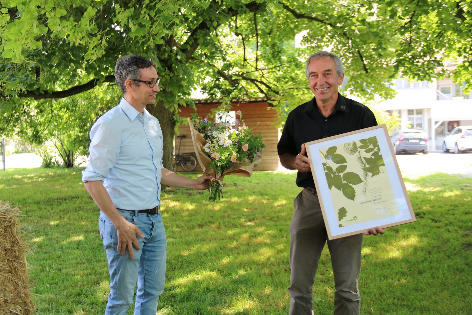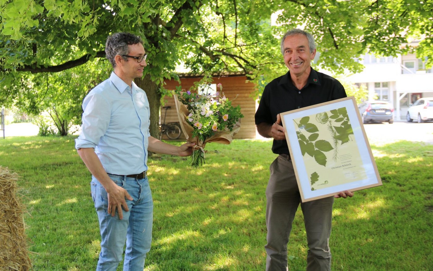 Der Geehrte dankte IP-Suisse, dem Ebenrain Zentrum für Landwirtschaft, der Vogelwarte Sempach und Pro Natura Baselland für die jahrzehntelange unkomplizierte Unterstützung. Er rief auf, an der Basis von Landwirtschaft und Naturschutz weiterhin in ökologischen und ökonomischen Anliegen zusammenzuarbeiten, um die Biodiversität zu fördern. Auch wenn auf nationaler Ebene diverse Verbände gerne Stimmung machen würden gegeneinander. Markus Jenny, Schweizerische Vogelwarte Sempach, hielt fest: «Christian sagte nie, man müsste etwas machen. Nein, er machte!» Andreas Stalder, Präsident IP-Suisse, bemerkte: «Christian Schürch und IP-Suisse beweisen seit Jahrzehnten, dass Ökologie und Ökonomie es ‹können› miteinander. Denn heute sieht es manchmal so aus, als ob nur Bio Suisse naturnah produzieren würde.»