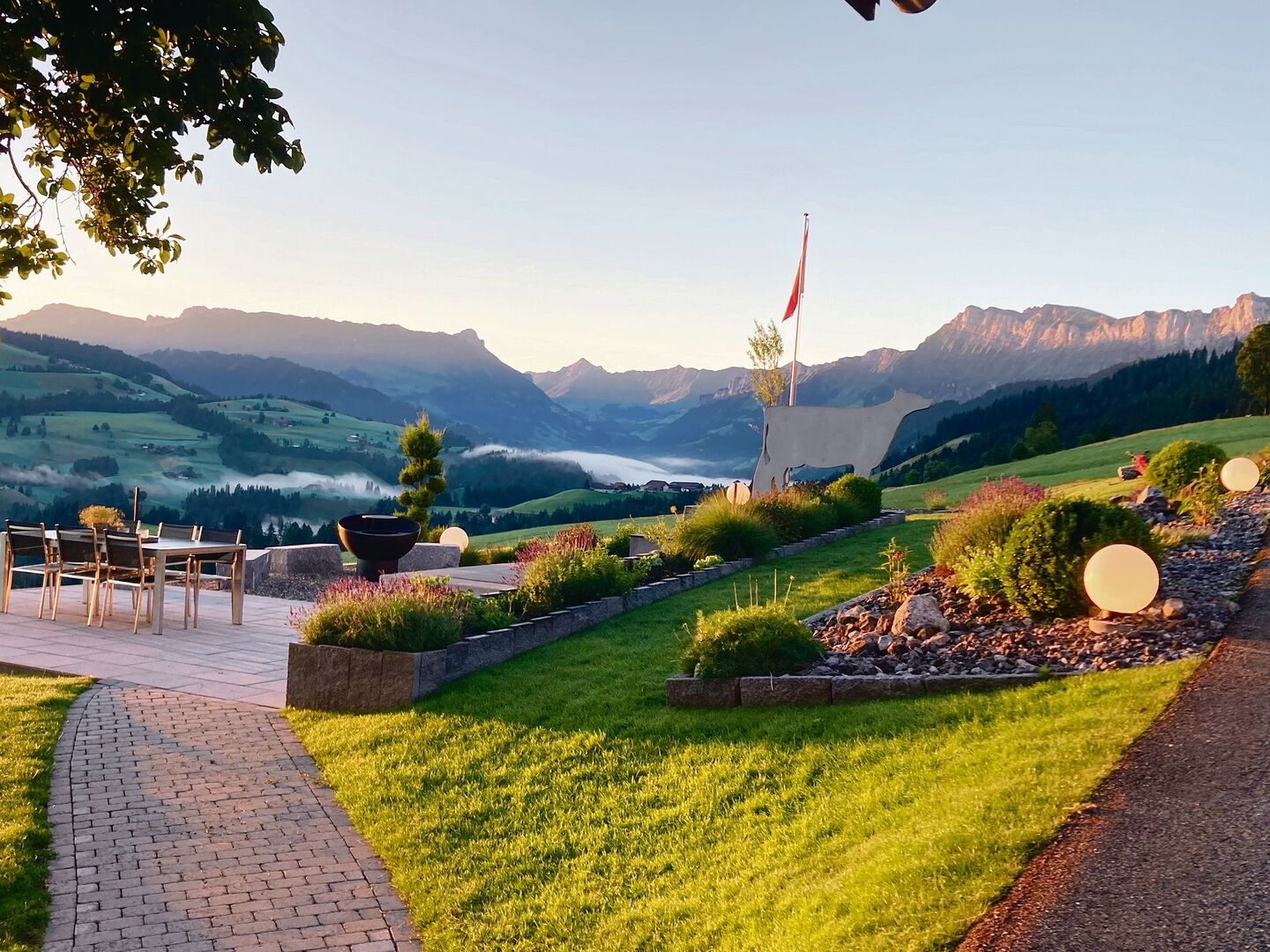 Am Ende entsteht dabei eine kleine grüne Insel – zwar ohne Palmen, aber genauso geeignet für die Erholung. Mit dem Panorama gleich hinter Familie Siegenthalers Gartensitzplatz können solche Palmen sowieso nicht mithalten: Die freie Sicht auf den Gebirgsstock Hohgant, die Schrattenflueh und das Brienzer Rothorn ist atemberaubend. Oder wie es Nadja Siegenthaler ausdrückt: «Wenn es zuhause so schön ist, muss ich für die Erholung gar nicht in die Ferien fahren.»