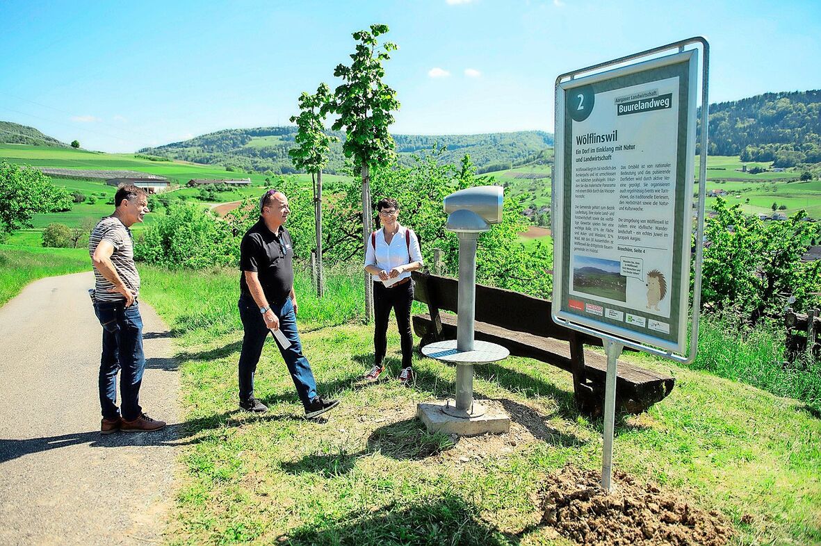 Nebst Colette Basler und Damaris Etterlin bedankten sich auch der Wölflinswiler Gemeindeammann Giuliano Sabato und Landammann Markus Dieth beim BVA, bei den Landwirten und allen Helfern, die den Buurelandweg möglich machen. Dieth war schon an mehreren Eröffnungen. «Es ist jedes Mal wieder ein Riesenerlebnis, wie eine schöne Erleuchtung, dass man gar nicht gross wegmuss, wir haben es so schön hier im Kanton Aargau», meinte er. Es sei wichtig, dass man die Landwirtschaft erlebbar mache und sich gemeinsam austauschen könne, die Biodiversität solle nicht vor dem Dorf anhalten, man solle sie mit hereinnehmen. [IMG 5-6]